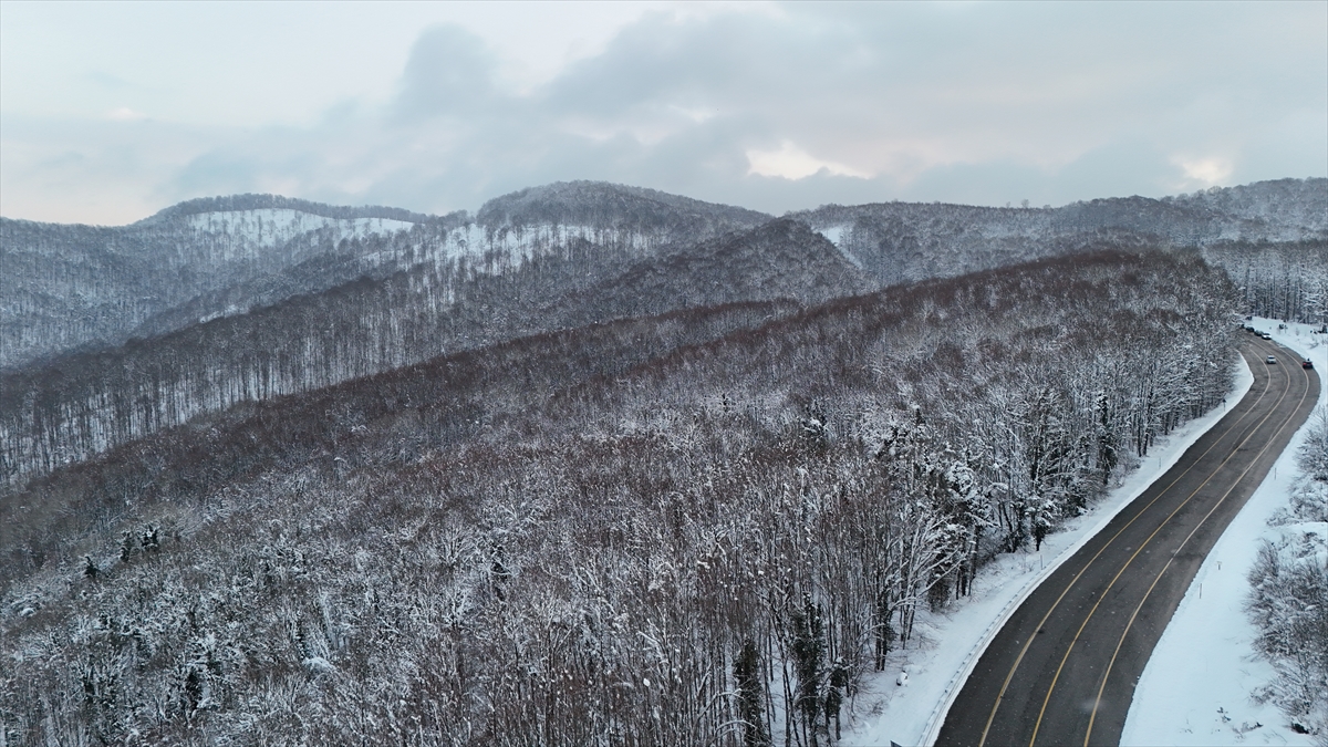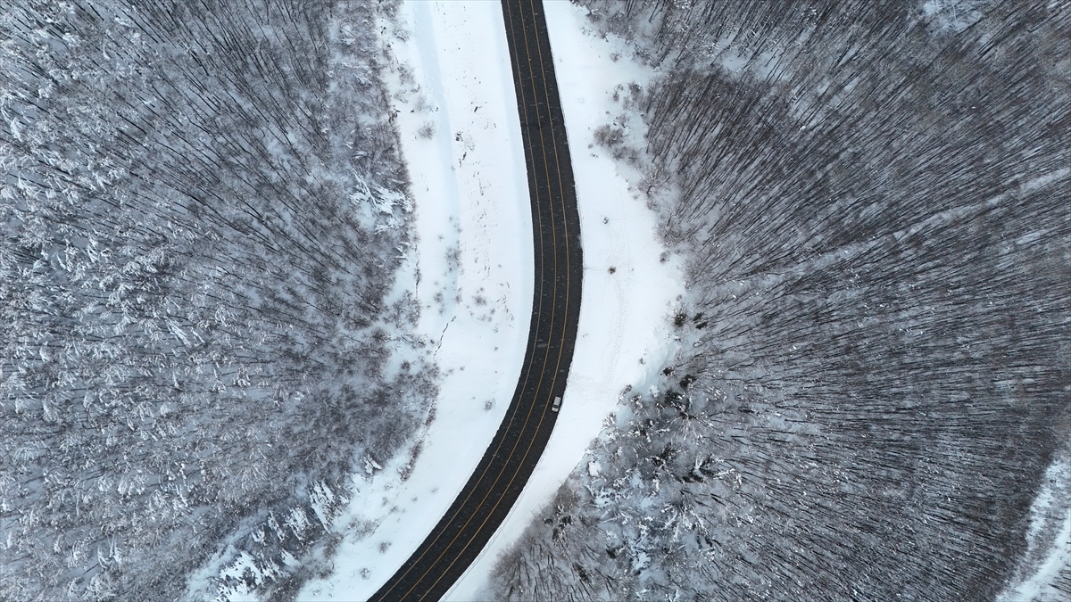 Beyaz örtü altındaki ormanlar dronla görüntülendi.
