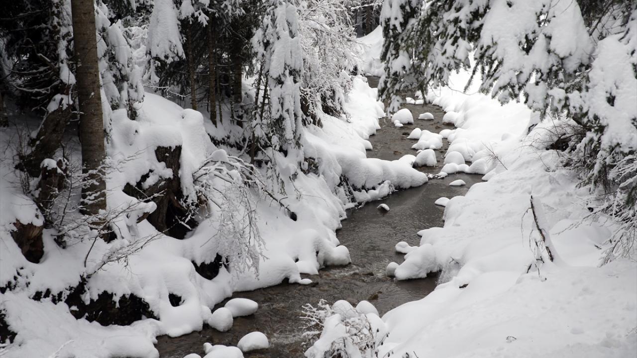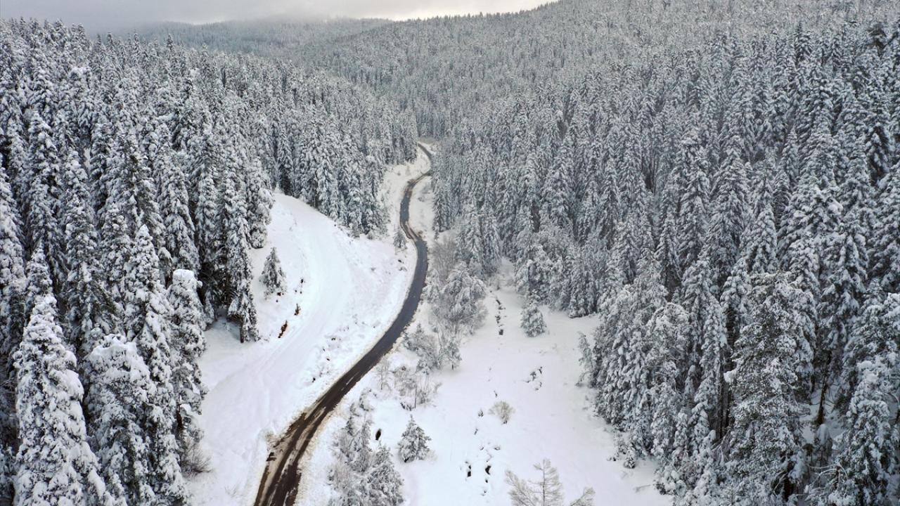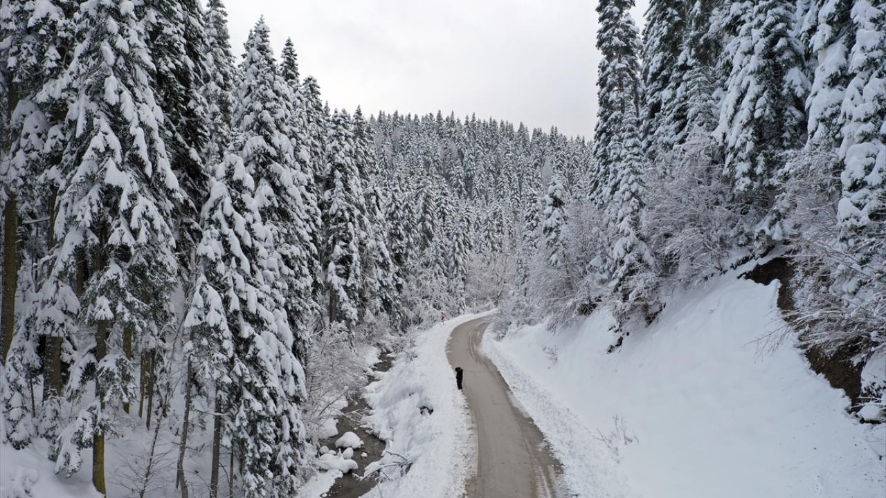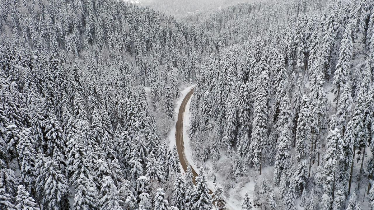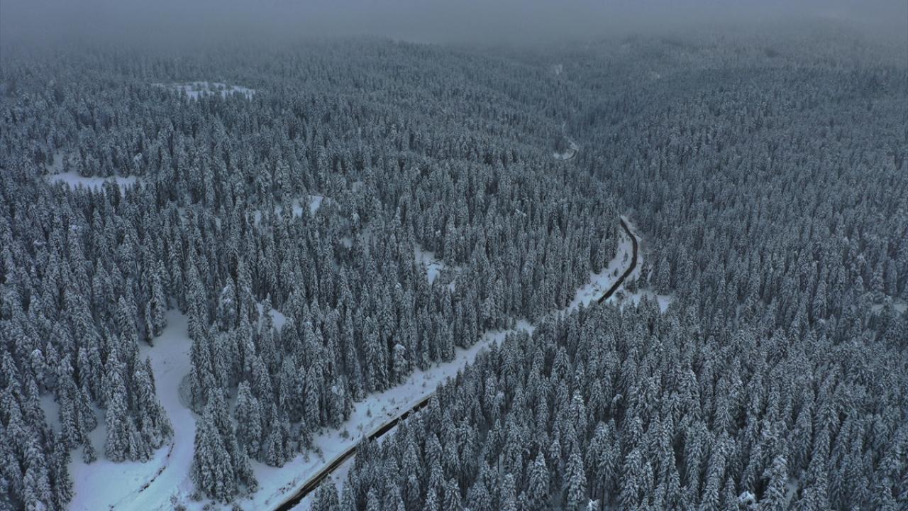 Kastamonu ve Bartın arasında bulunan Küre Dağları`nın Ağlı ve Küre ilçelerini birbirine bağlayan bölümünde kar etkili oldu.