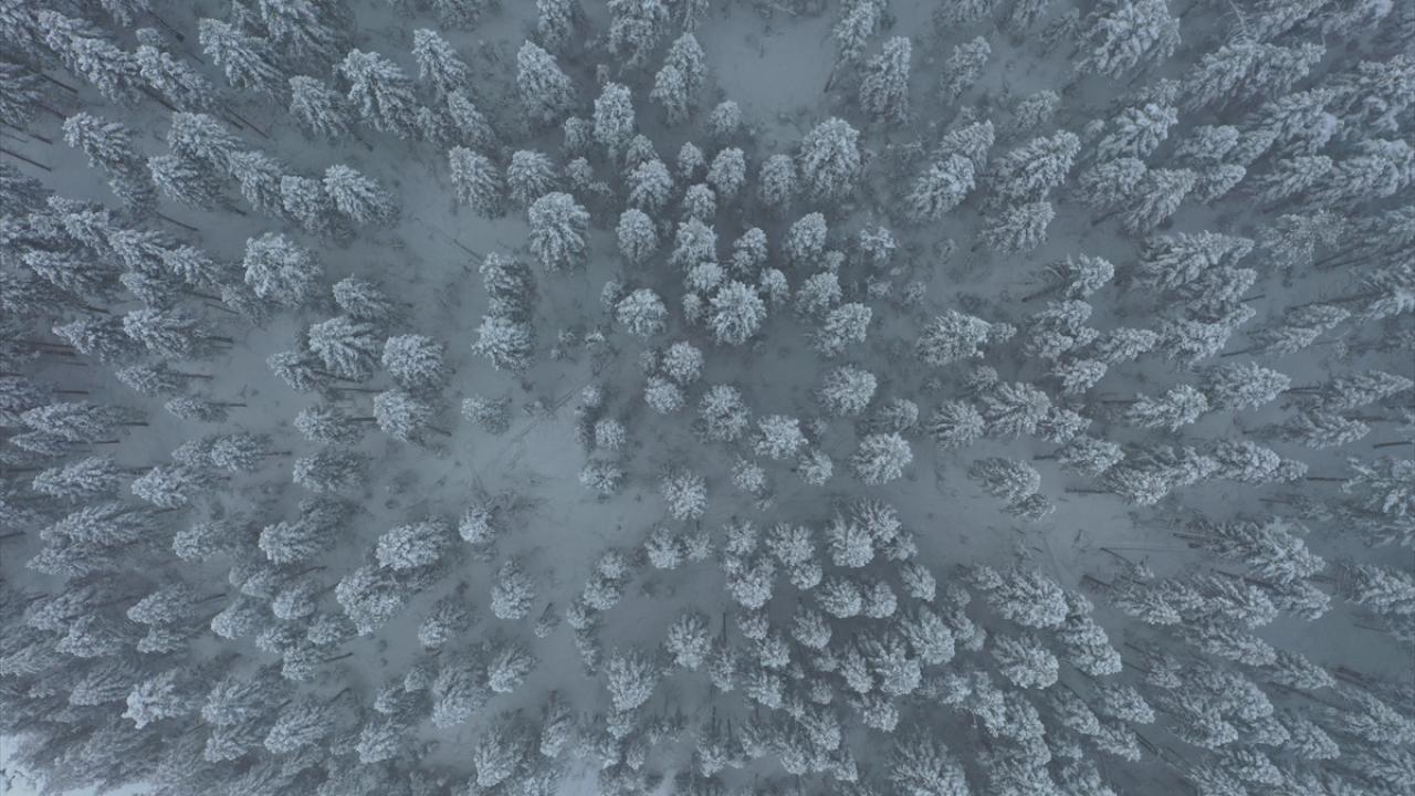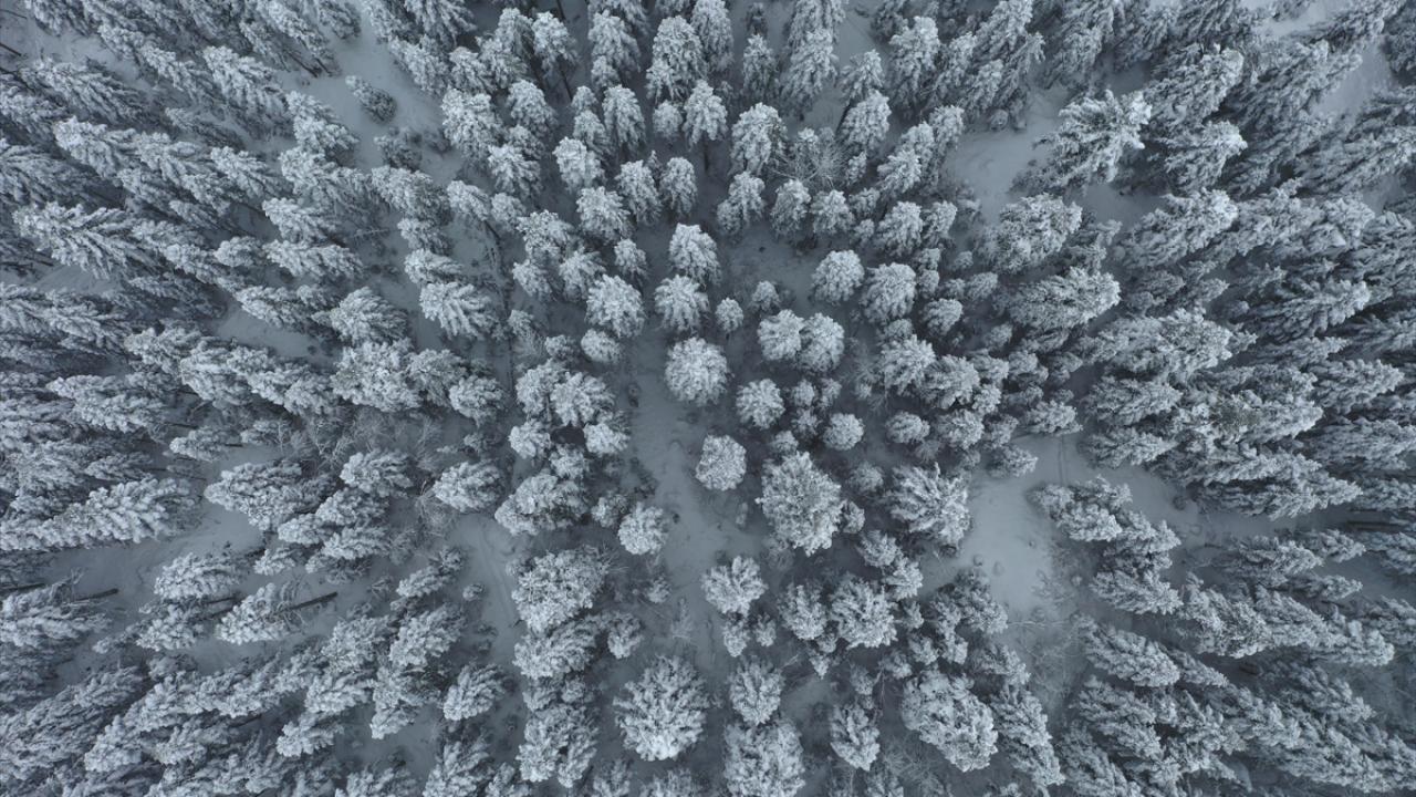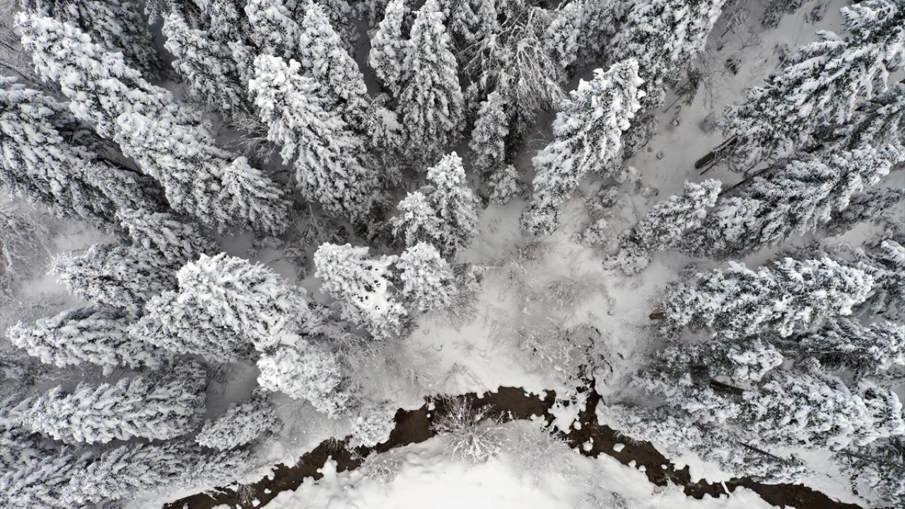 Kış mevsiminin tüm güzelliklerini sergileyen dağların beyaz örtüyle buluşması havadan görüntülendi.