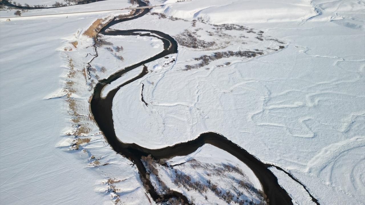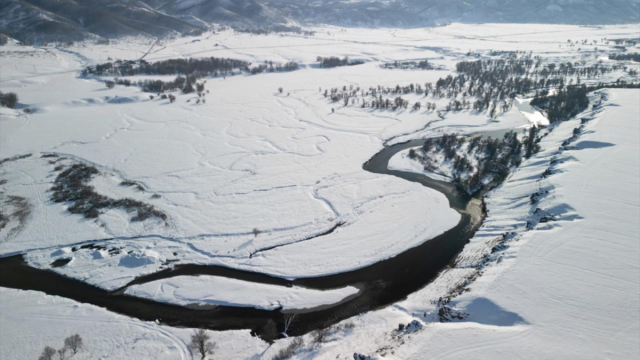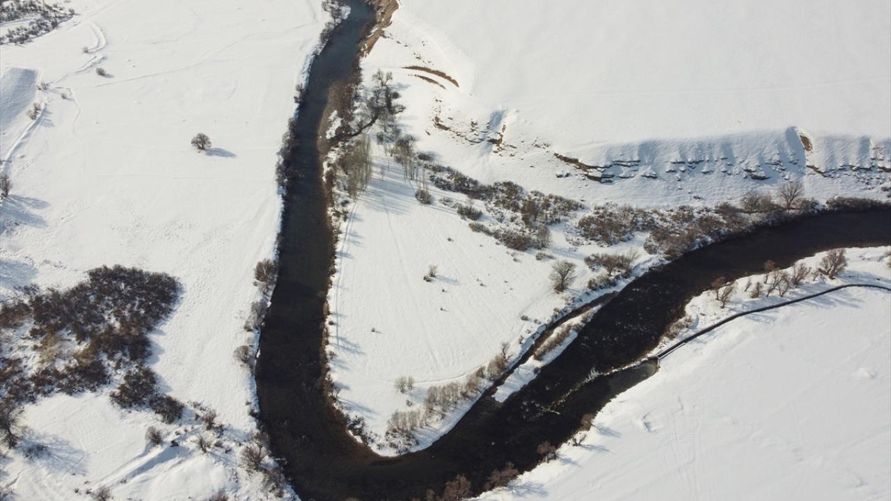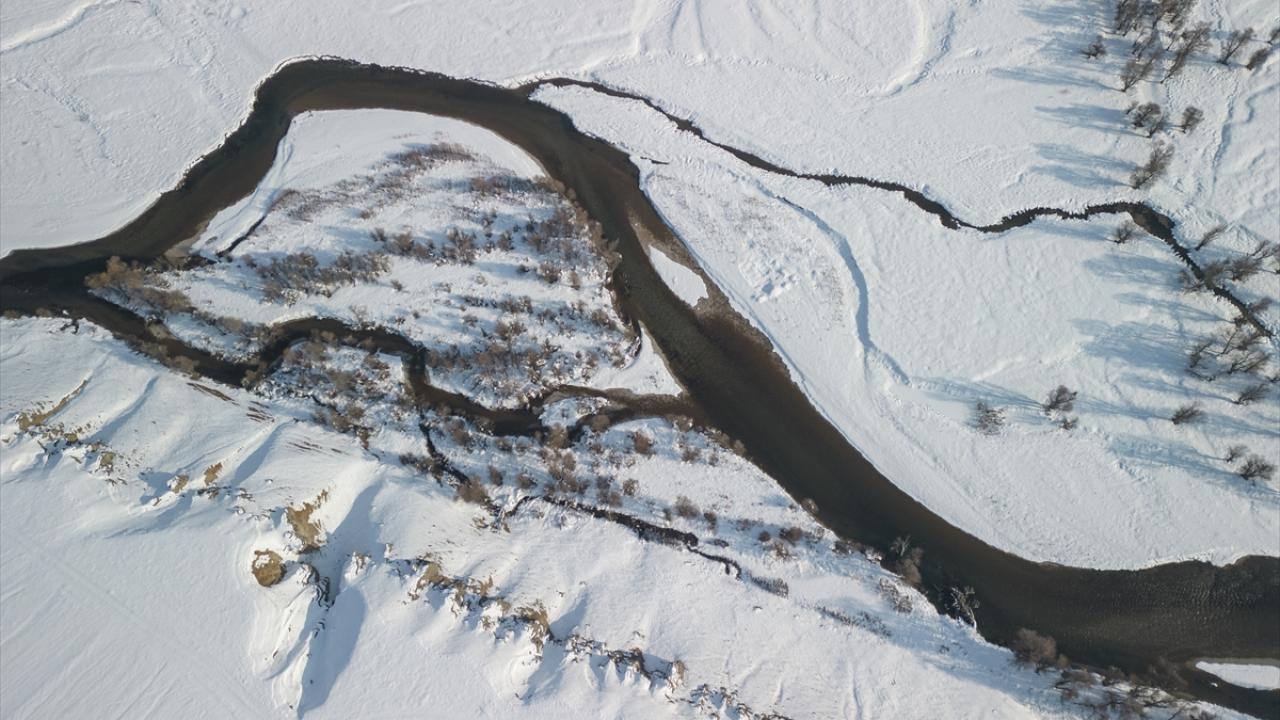 Munzur Çayı`nın da menderesler oluşturarak geçtiği milli parkın karlı manzarası dronla görüntülendi.