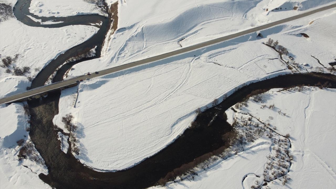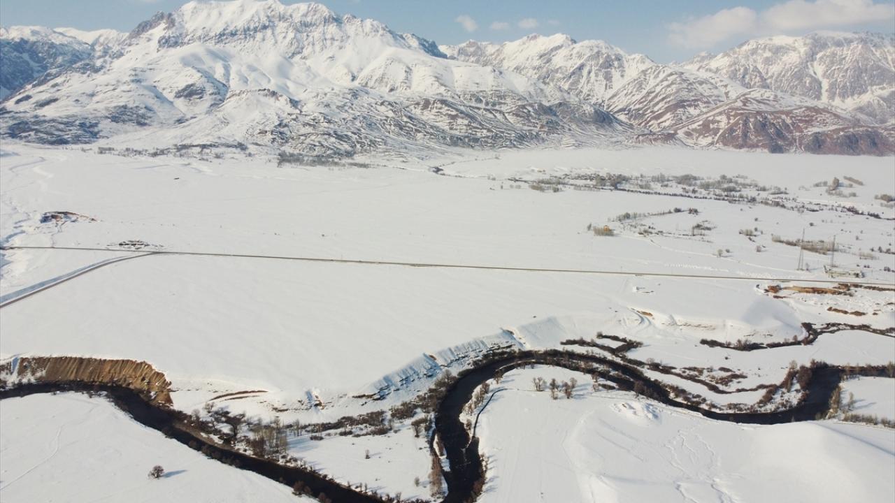 Karla kaplanan Munzur Vadisi ve çevresindeki ovalar dronla görüntülendi