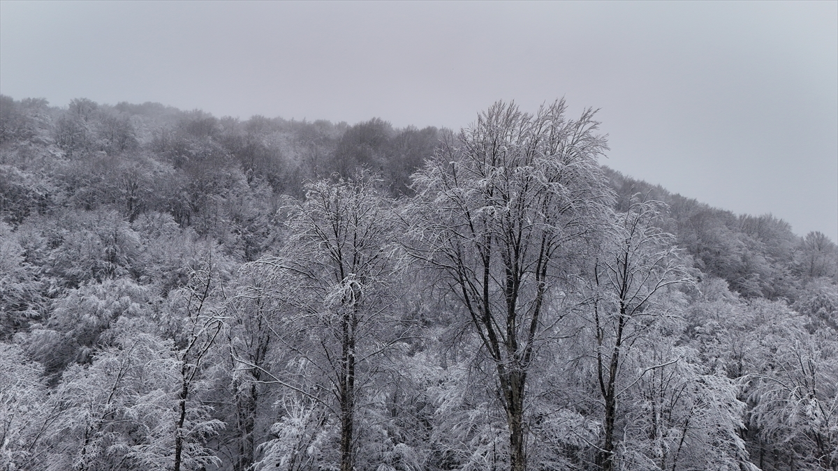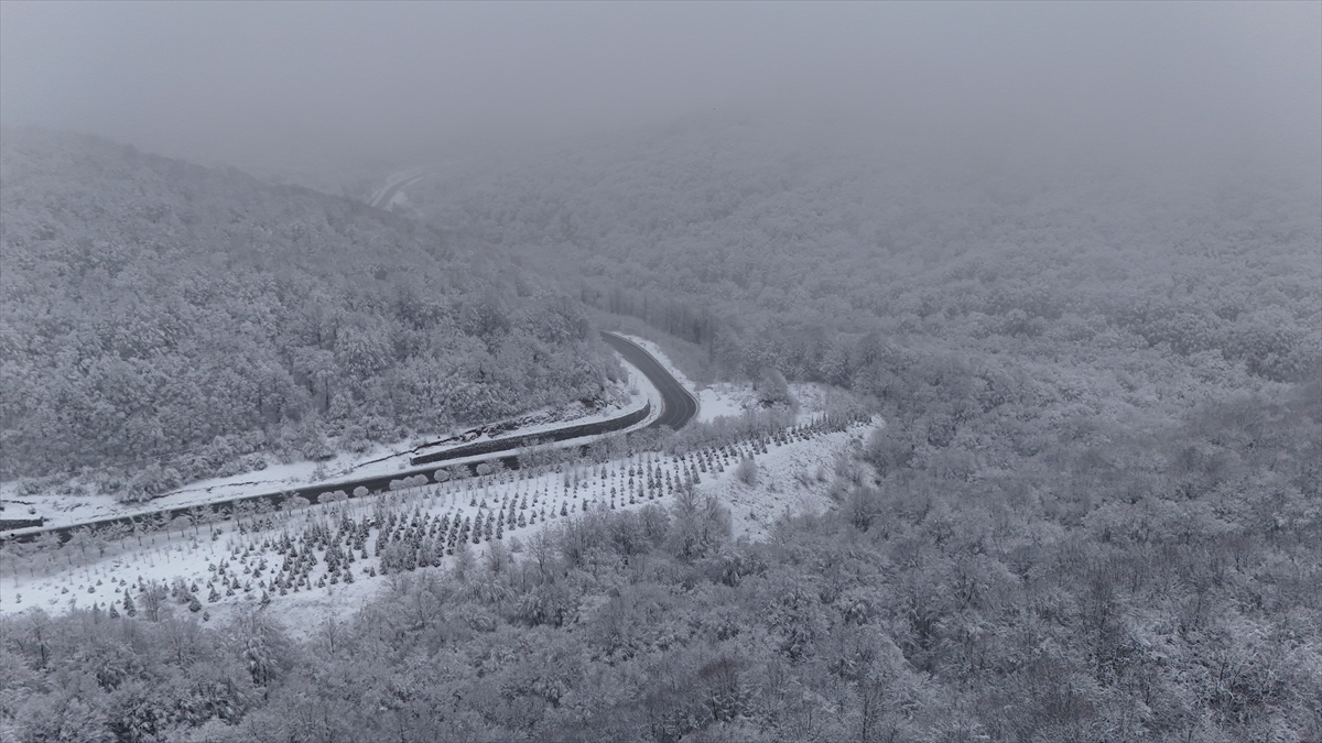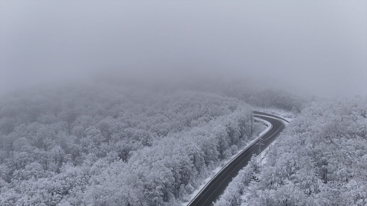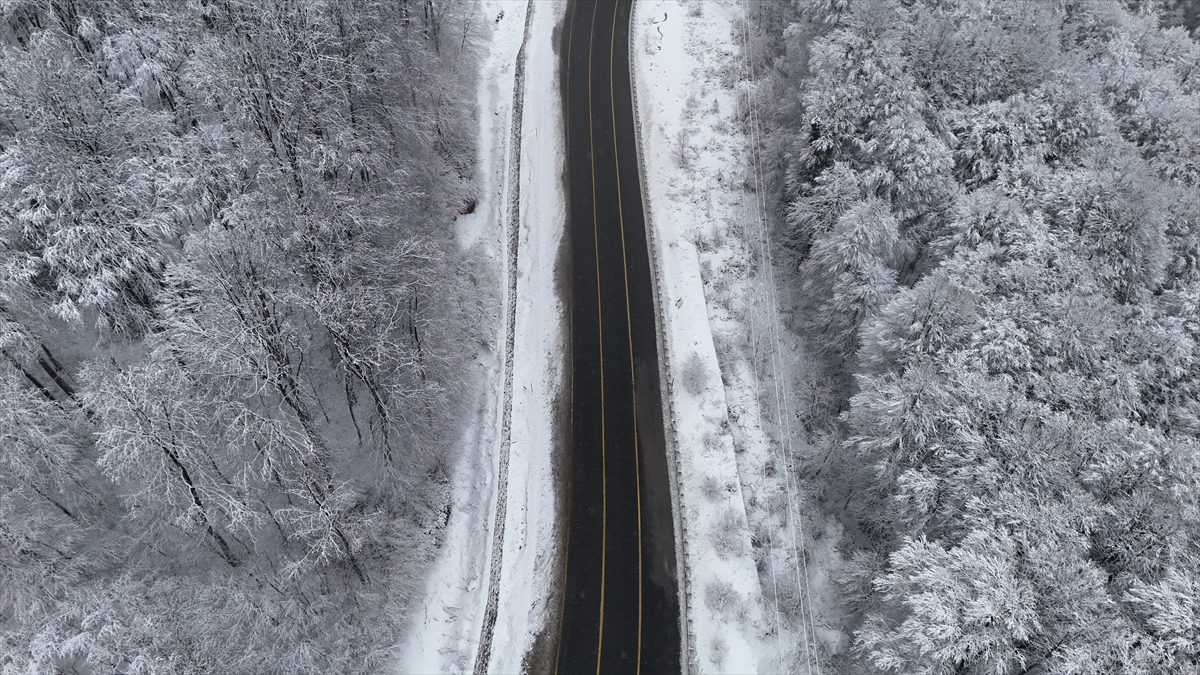 Trakya'da, Karadeniz kıyılarına paralel uzanan Yıldız Dağları'nda kar yağışının ardından oluşan manzara dronla görüntülendi.