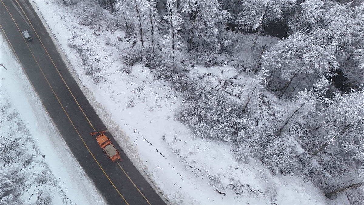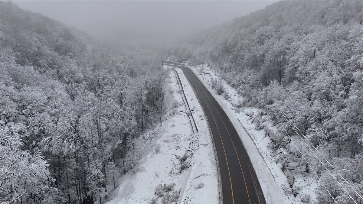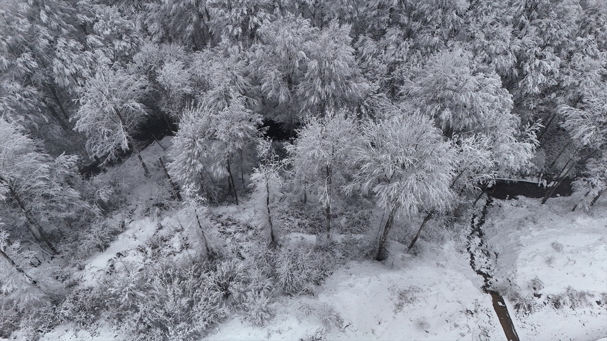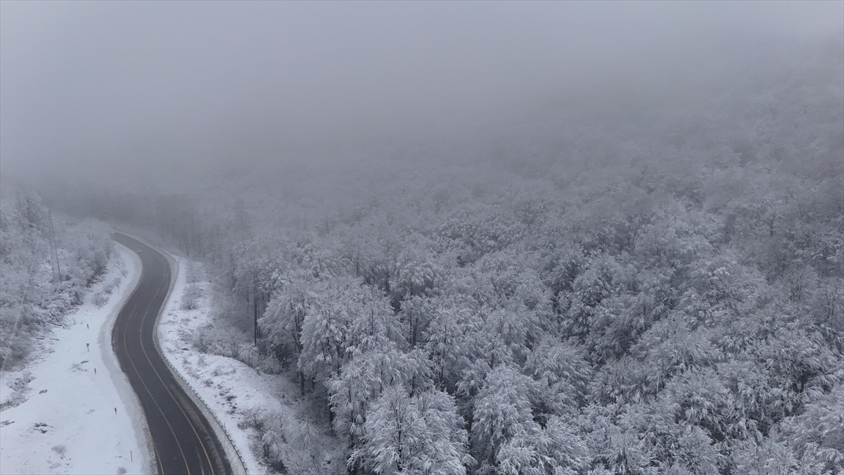 Trakya'da, Karadeniz kıyılarına paralel uzanan Yıldız Dağları'nda kar yağışının ardından oluşan manzara dronla görüntülendi.