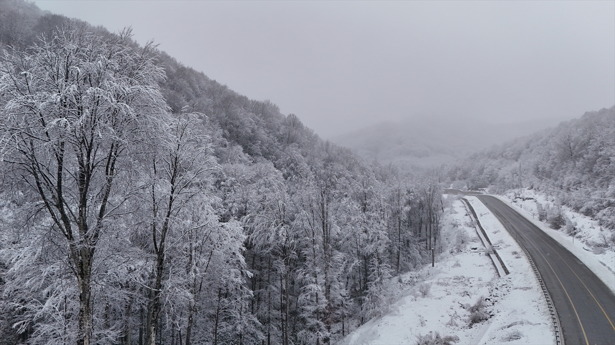 Istranca Ormanları`nı da içinde barındıran 1031 rakımlı Yıldız Dağları`nda kar yağışı ve zaman zaman etkili olan sis nedeniyle güzel görüntü oluştu.