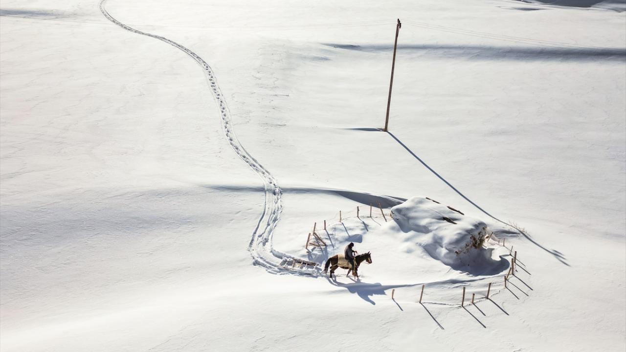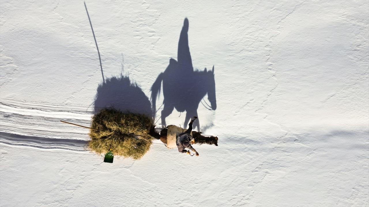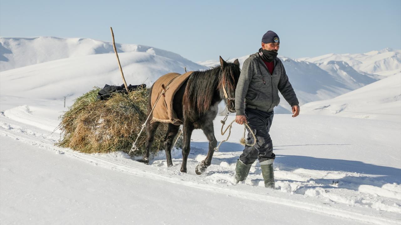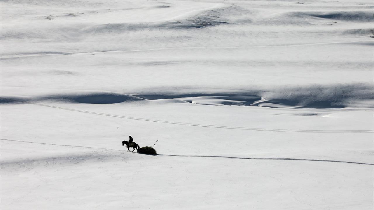 Kızak ya da yük hayvanları aracılığıyla taşıdıkları otu, ezdikleri kar örtüsünün üzerine sererek hayvanlarını besleyen hayvan sahipleri, bu işlemi günde 2-3 kez tekrarlıyor.