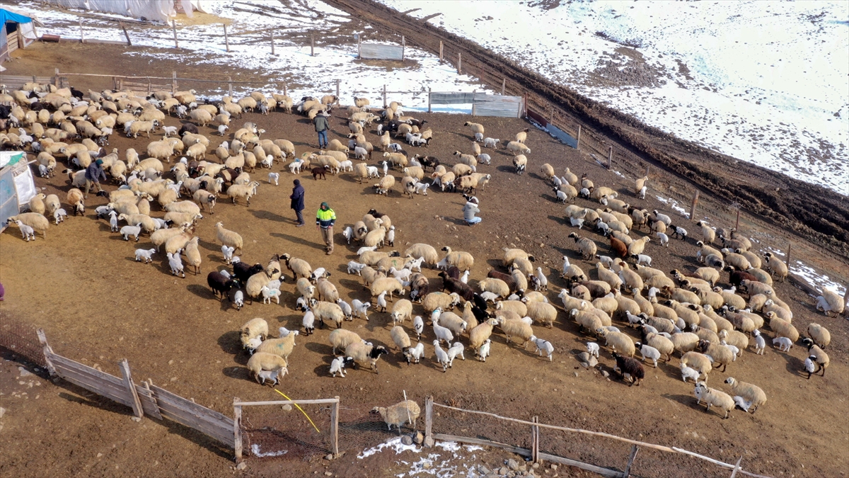 Çetin kış koşullarıyla mücadele eden göçerlerin mesaisi kuzulama sezonunda artıyor.