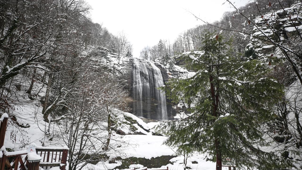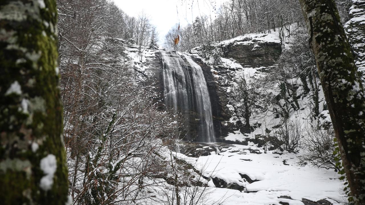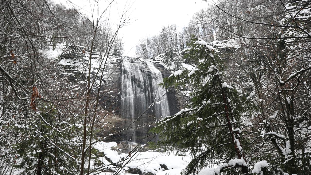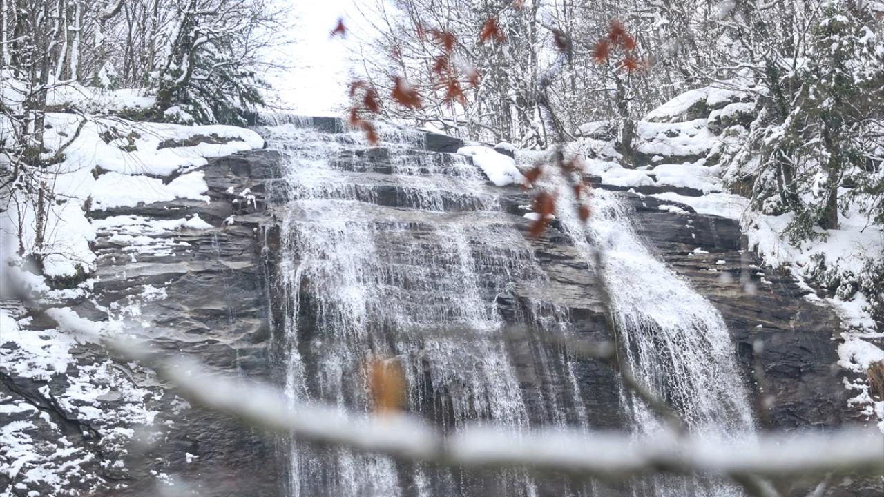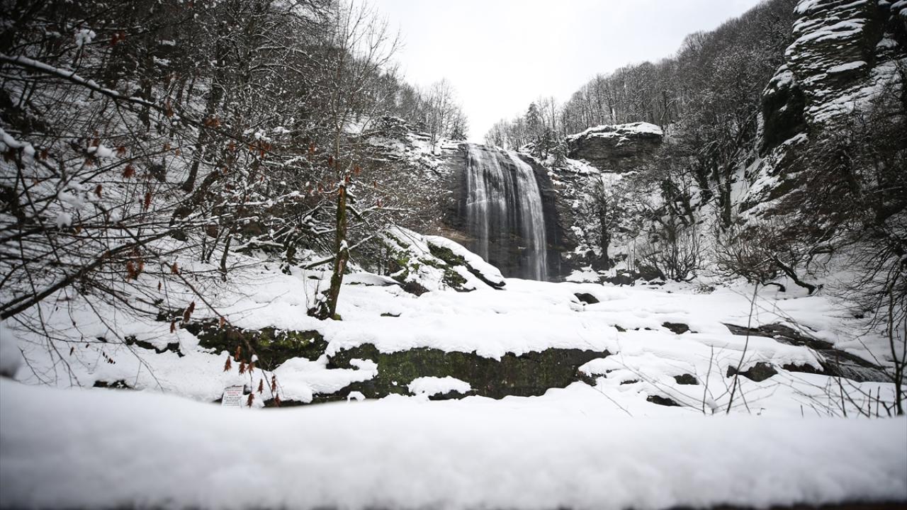 Bursa'nın Mustafakemalpaşa ilçesinde fay hattının kırılması sonucu ortaya çıkan, her mevsim ziyaretçilerin uğrak noktası olan Suuçtu Şelalesi'nin çevresi karla kaplandı.
