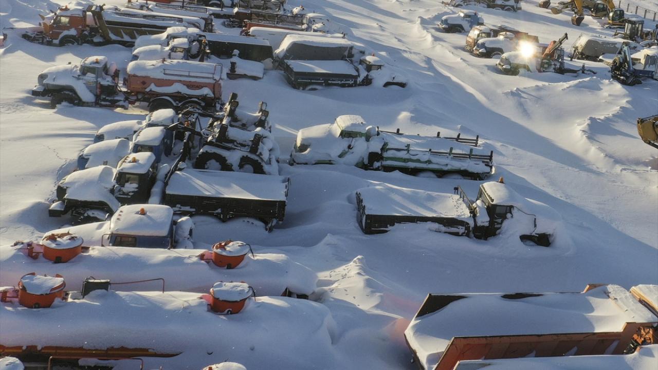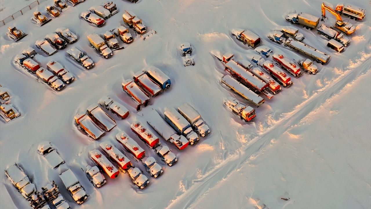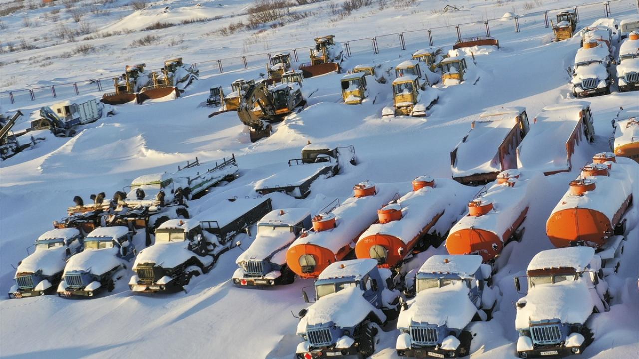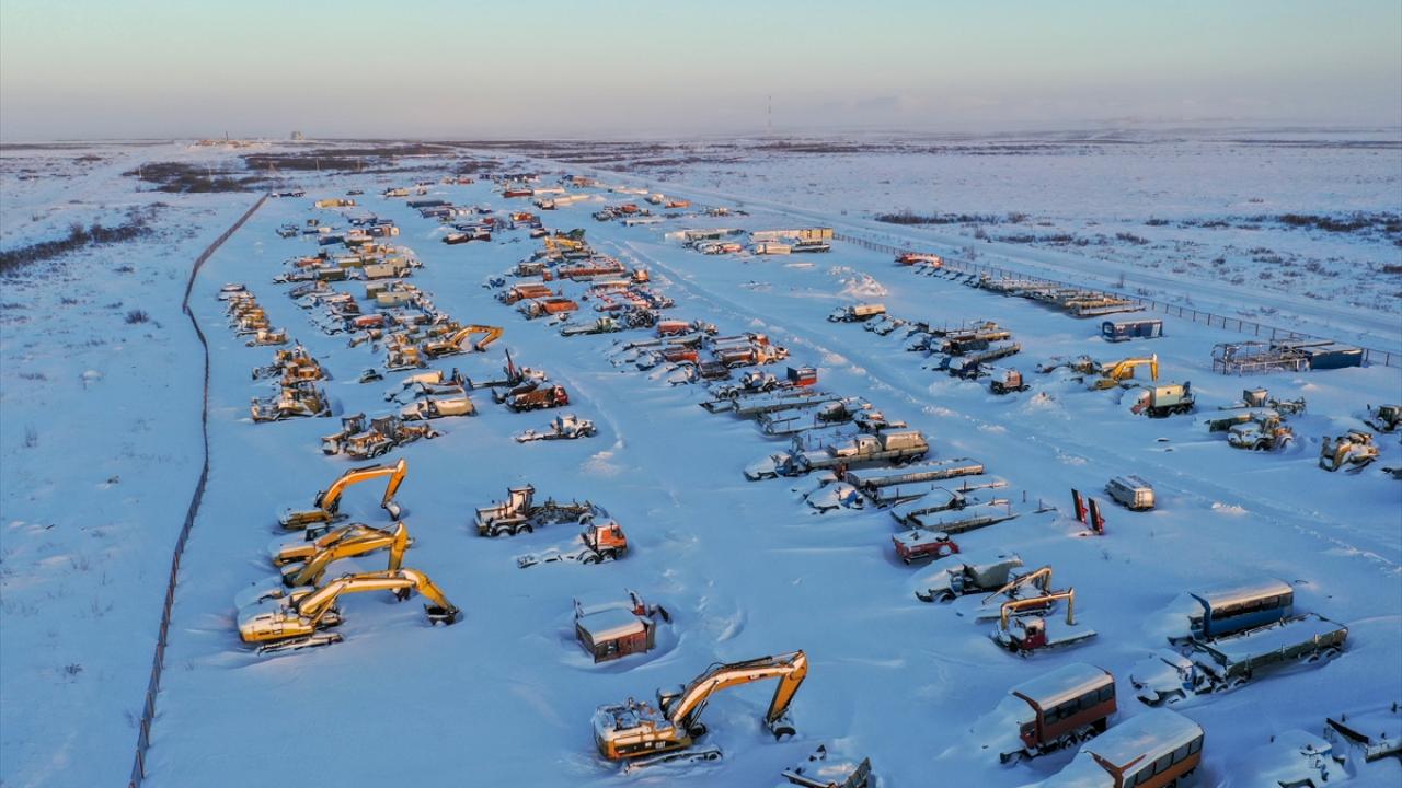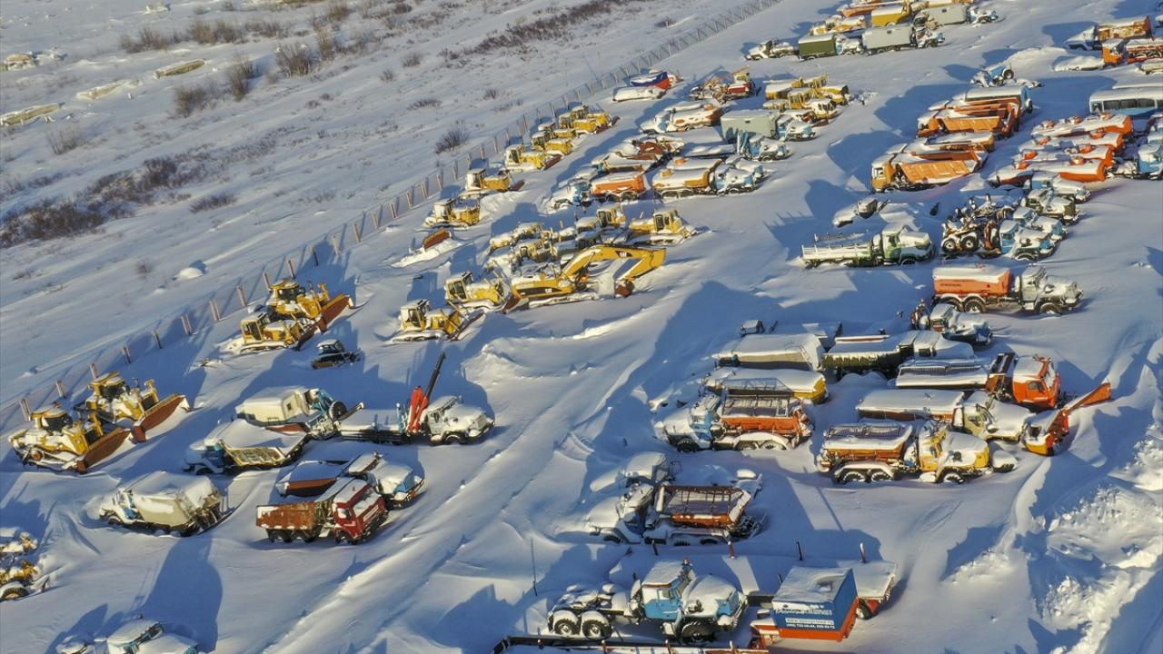 Vorkuta`ya 5 kilometre uzaklıktaki Bovanenkovo -Ukhta gaz boru hattının inşaatındaki çalışmaların tamamlanmasının ardından sonrasında bölgede de kullanılan iş makineleri ile kamyonlar, geri dönüş için gerekli yol ve güzergahın yetersizliğinin yanı sıra harcama maliyetlerinin yüksekliği nedeniyle kar kütleleri altında kaderine terk edilmiş olarak bekliyor.