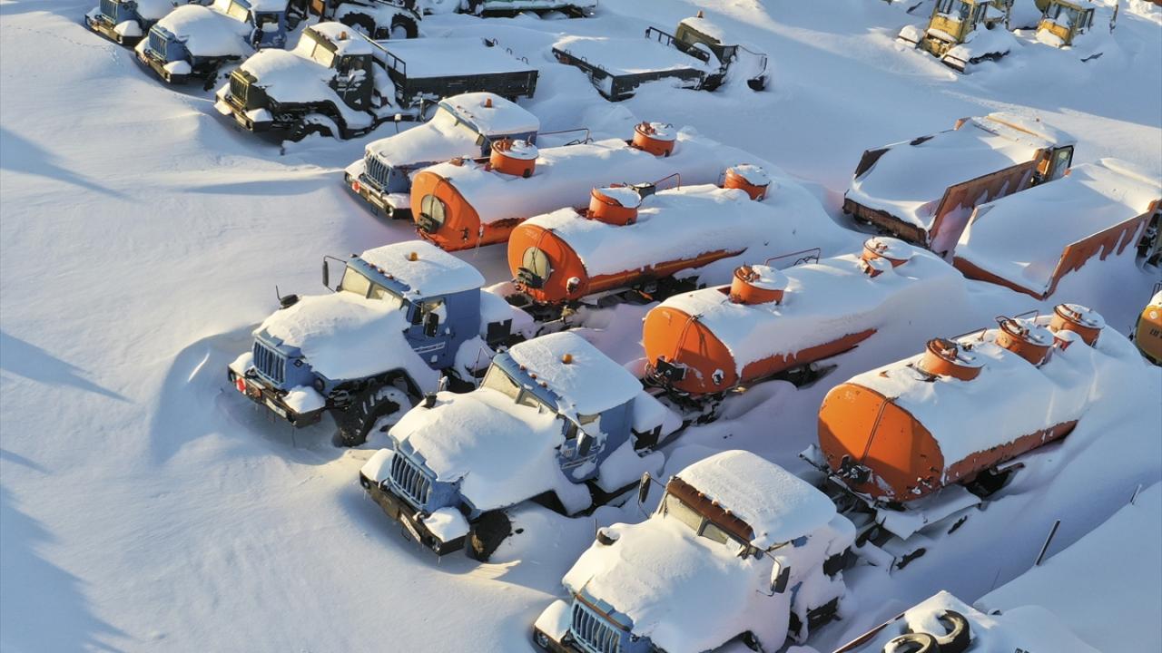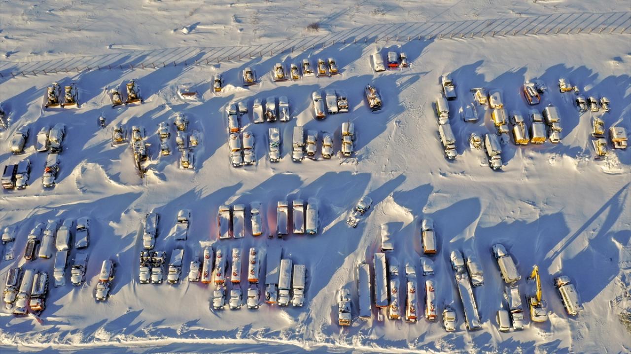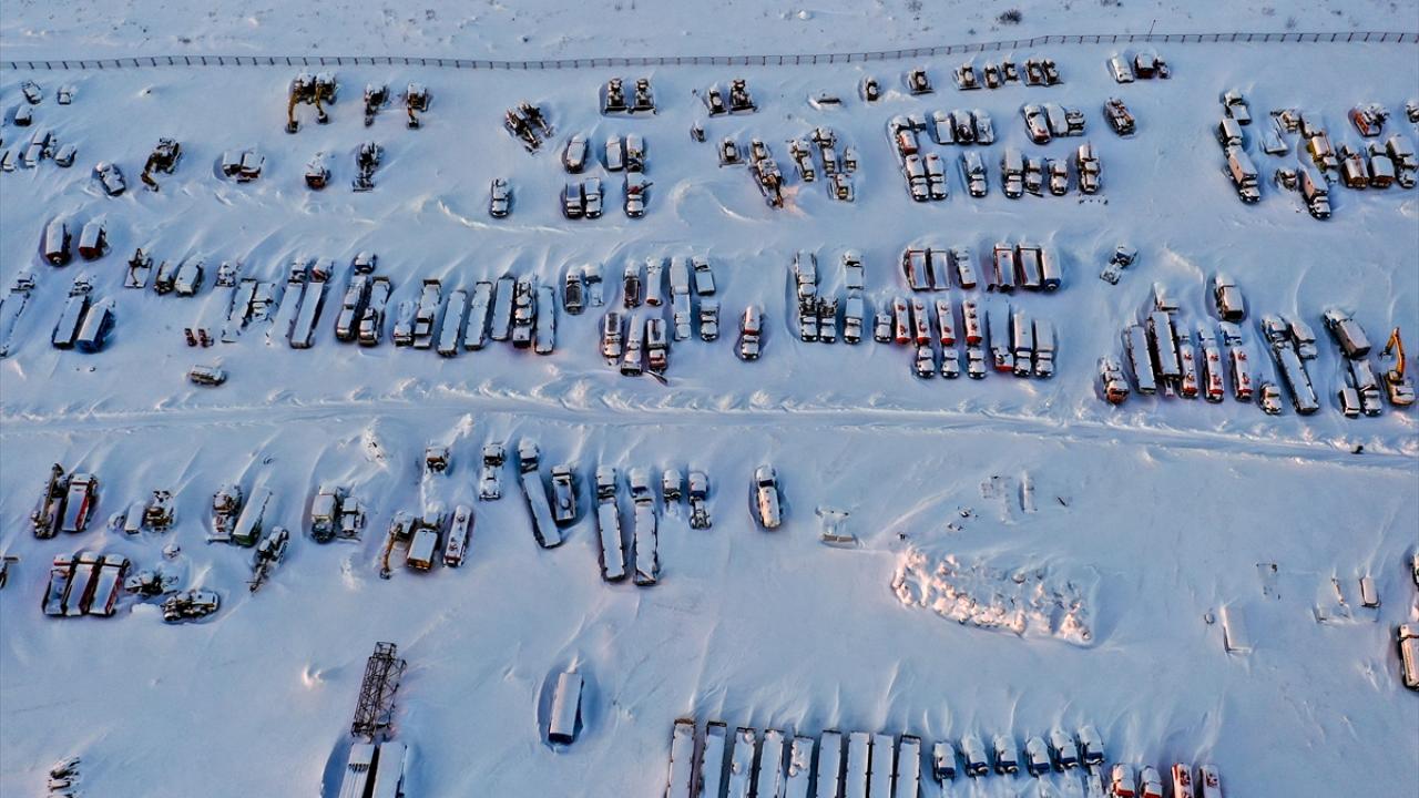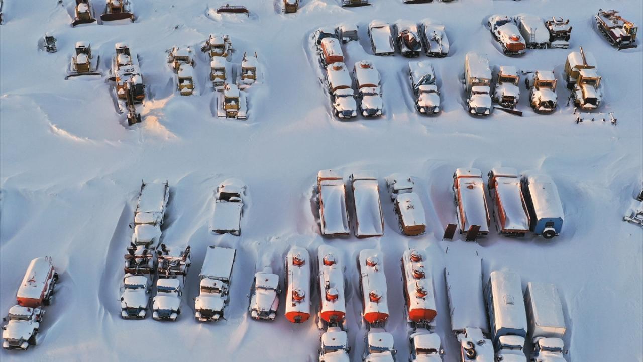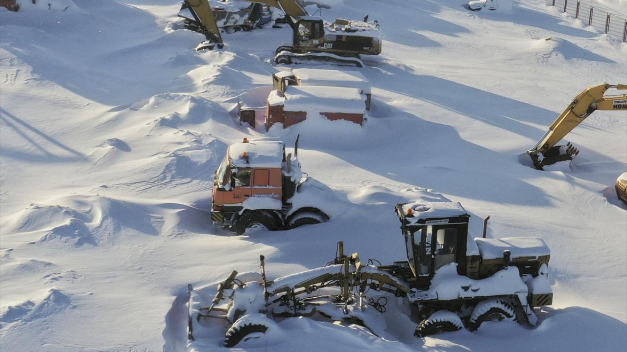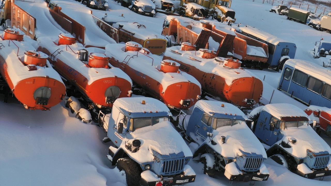 Vorkuta`ya 5 kilometre uzaklıktaki Bovanenkovo -Ukhta gaz boru hattının inşaatındaki çalışmaların tamamlanmasının ardından sonrasında bölgede de kullanılan iş makineleri ile kamyonlar, geri dönüş için gerekli yol ve güzergahın yetersizliğinin yanı sıra harcama maliyetlerinin yüksekliği nedeniyle kar kütleleri altında kaderine terk edilmiş olarak bekliyor.