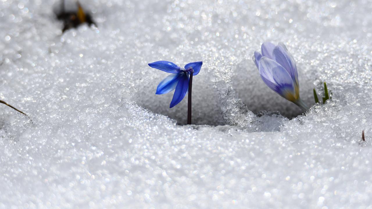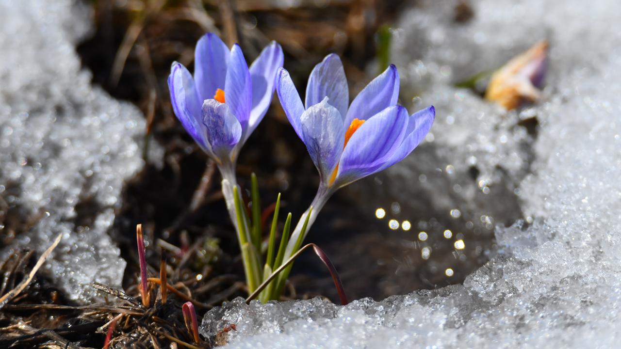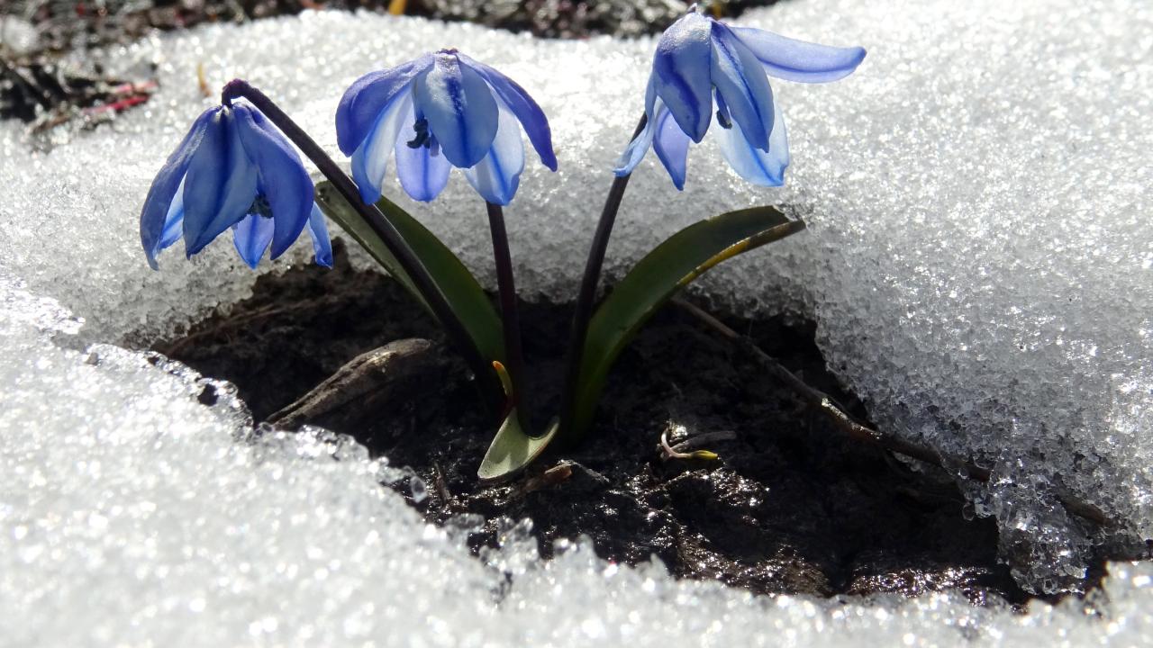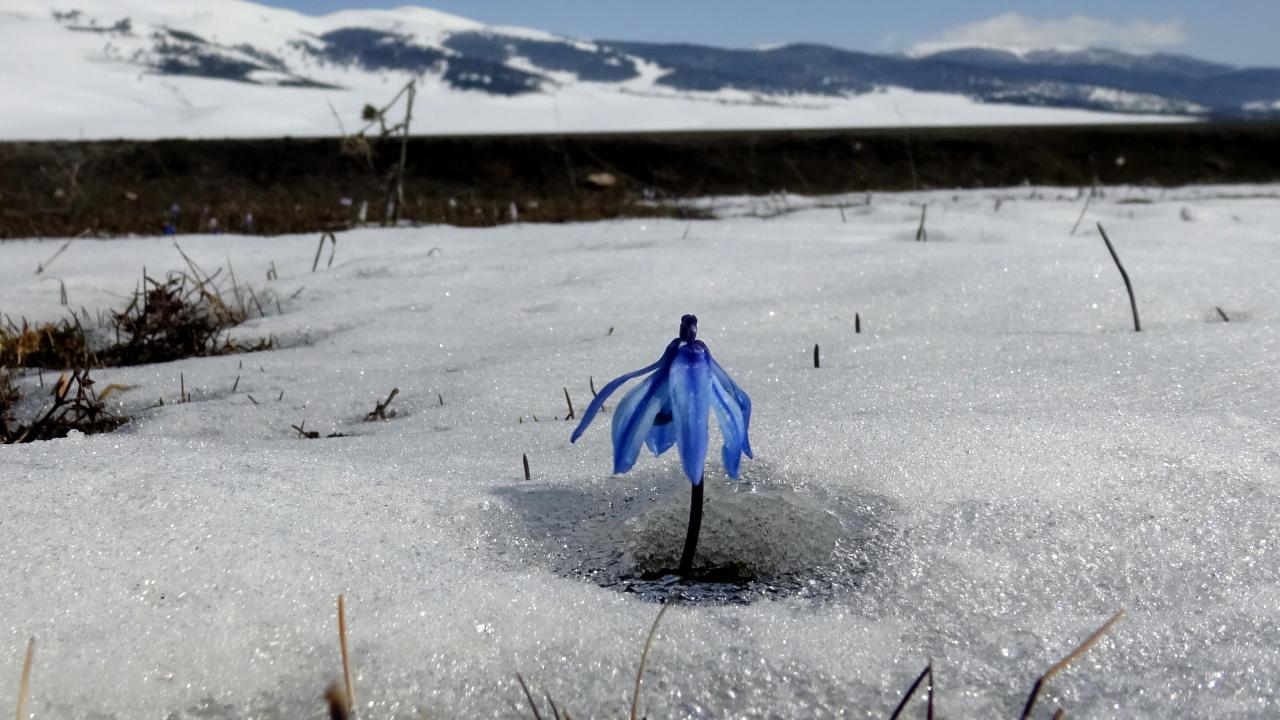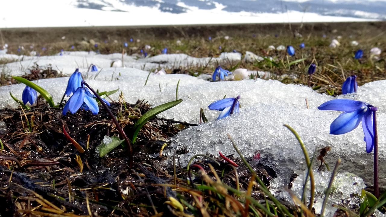 Hançerli Düzü ve Keklik Vadisi bölgesinde gün yüzüne çıkan mavi kardelen ve çiğdemler, bahar ile kışın buluştuğu güzelliği sergiliyor.