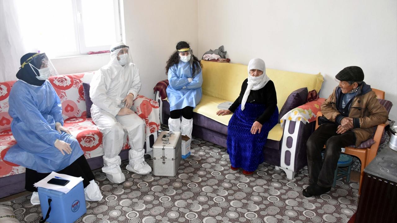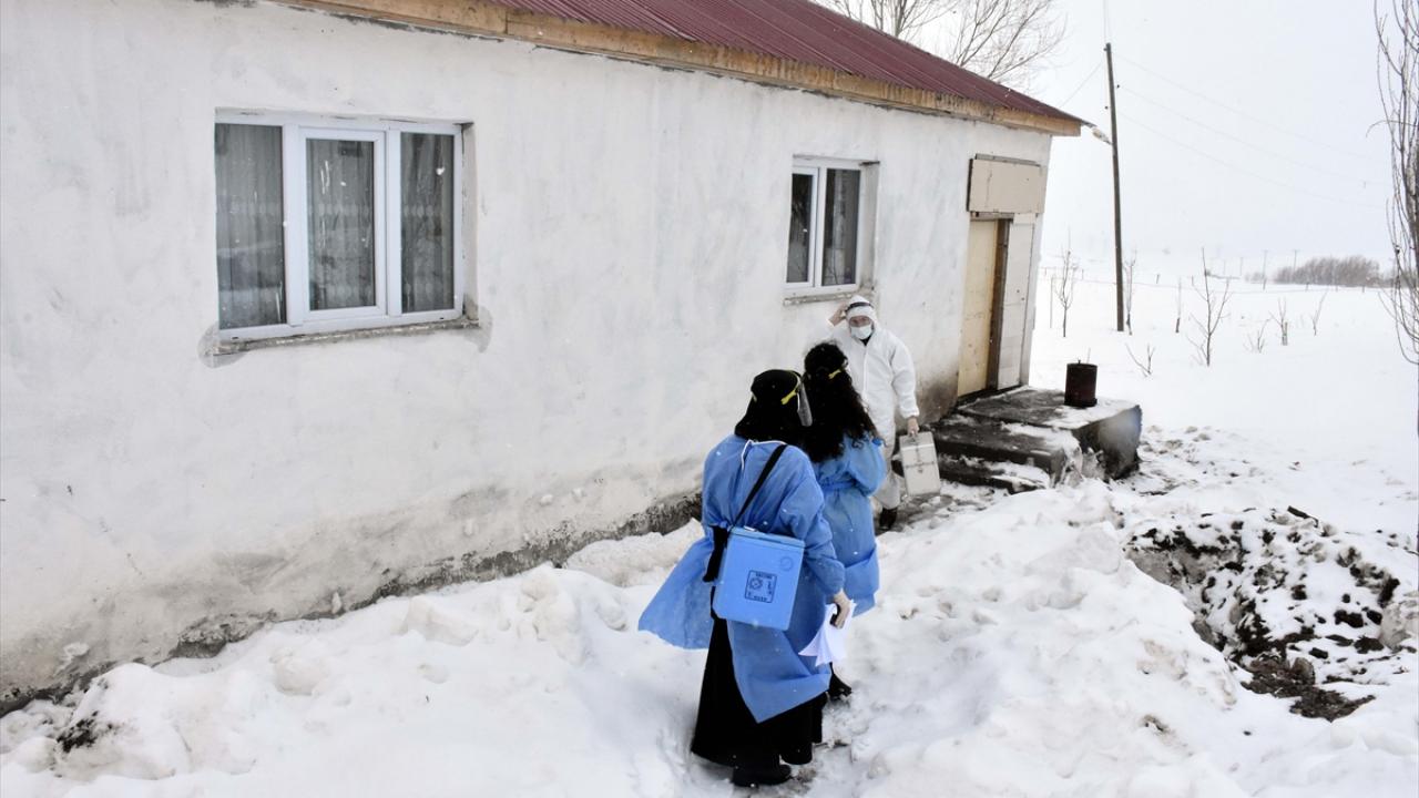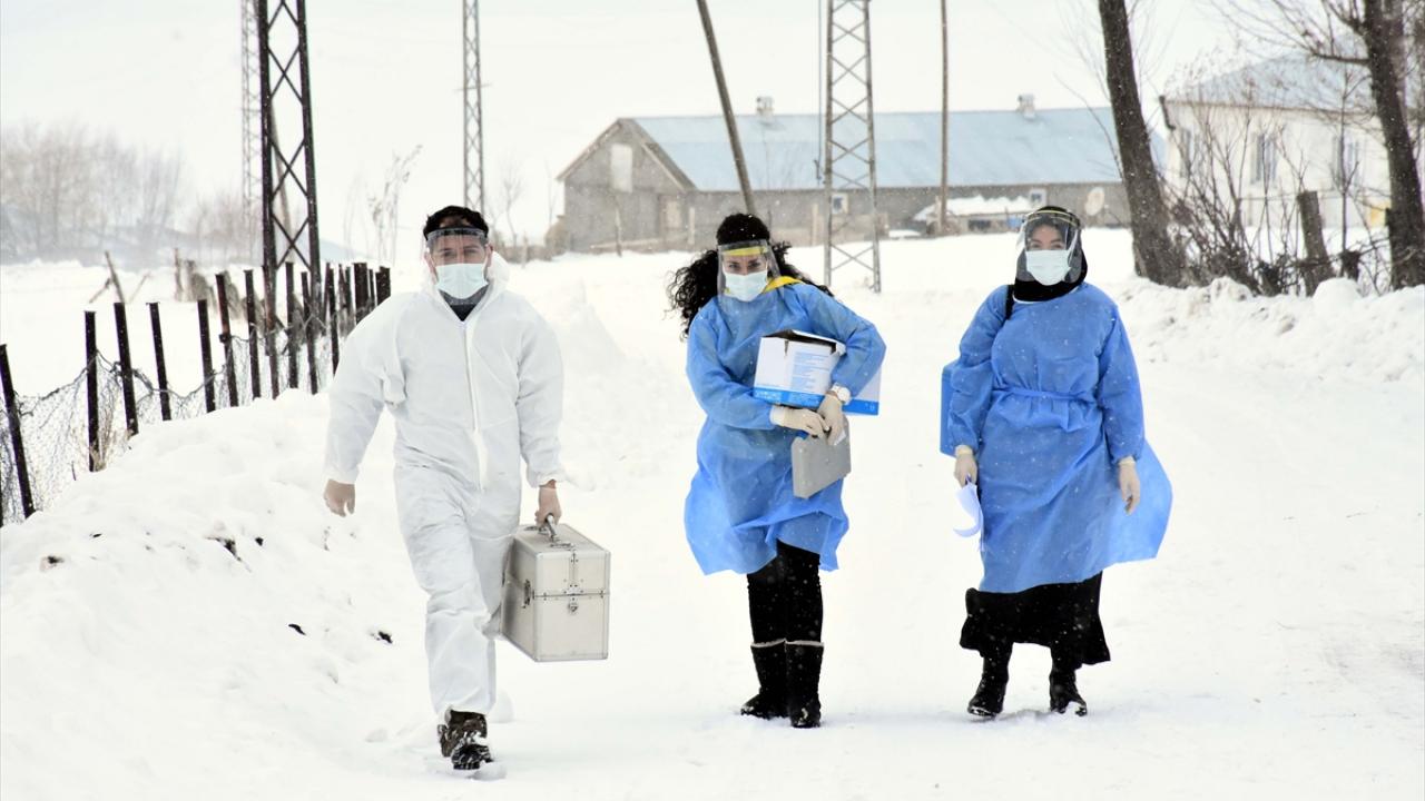 Muş'ta yeni tip koronavirüsle mücadele kapsamında aşı çalışması yürüten sağlık ekipleri, olumsuz hava koşullarında dahi kırsaldaki 80 yaş ve üzerindeki kişilere ulaşarak CoronaVac aşısı yapıyor.