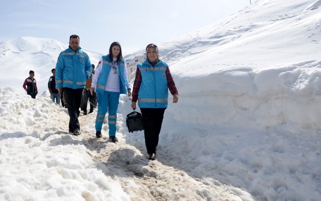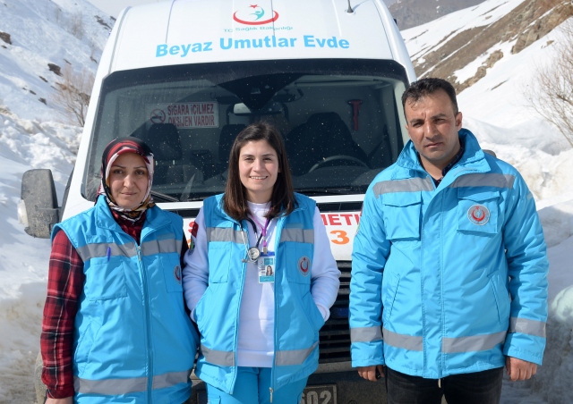Bitlis Sağlık Müdürlüğü Evde Sağlık Hizmeti ekipleri, kardan kapanan yollardaki güçlükleri aşarak ulaştıkları köylerde hastaları muayene ediyor ve bakımlarını yapıyor. Ekipler, özel tasarlanmış tam donanımlı ambulanslarla zorlu doğa koşullarında kilometrelerce yol katederek, köylerdeki yatalak, engelli, yaşlı ve kronik hastalara sağlık hizmeti sunuyor. Çoğu zaman kardan kapanan yolda saatlerce yürümek zorunda kalan ekipler, görevlerini fedakarca sürdürüyor.
