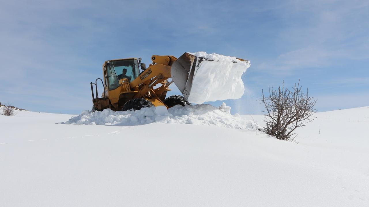 Kar kalınlığının bir metre olduğu mezranın yolu ekiplerin, çalışmasıyla ulaşıma açıldı.