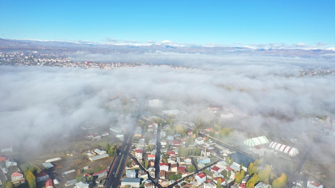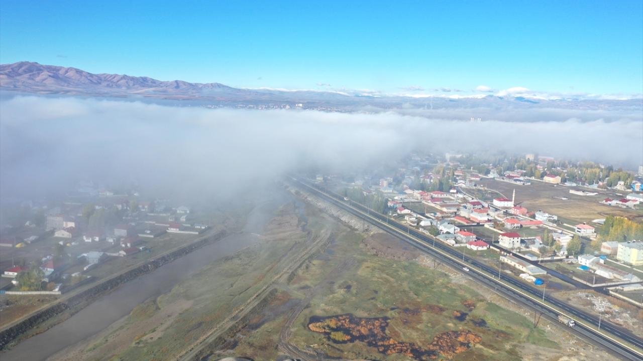 Ağrı Ovası ve çevresi ise sis altında kaldı. Şehir merkezinde güzel manzara oluşturan sis, daha sonra etkisini kaybetti.