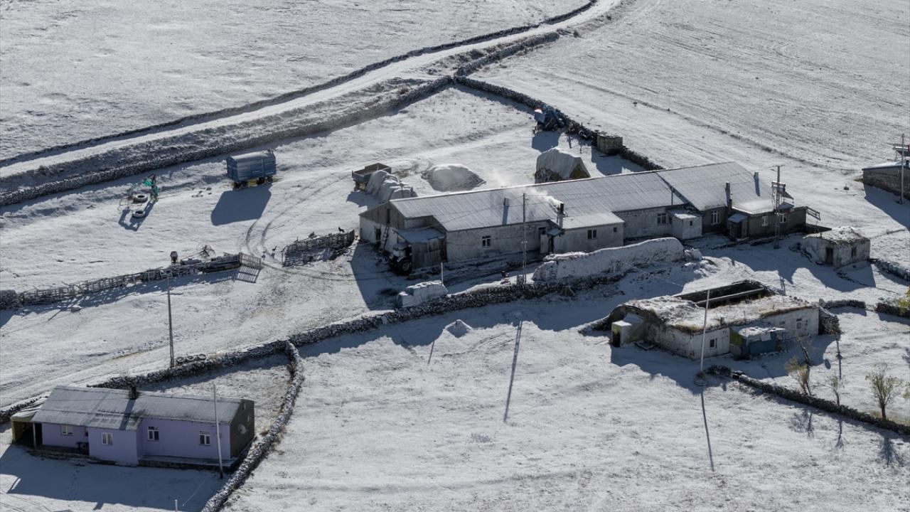 Kars`ta dün başlayan ve aralıklarla süren kar yağışı, bazı köyleri beyaza bürüdü.