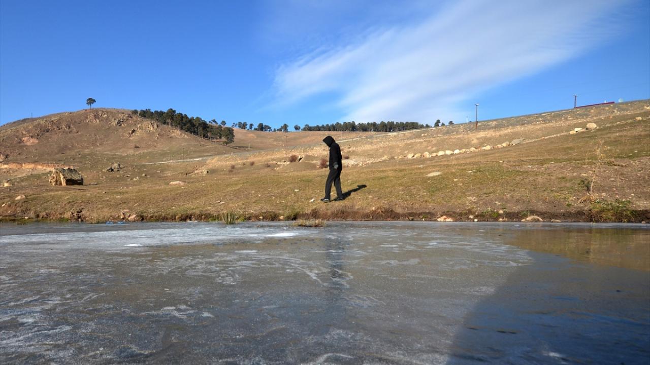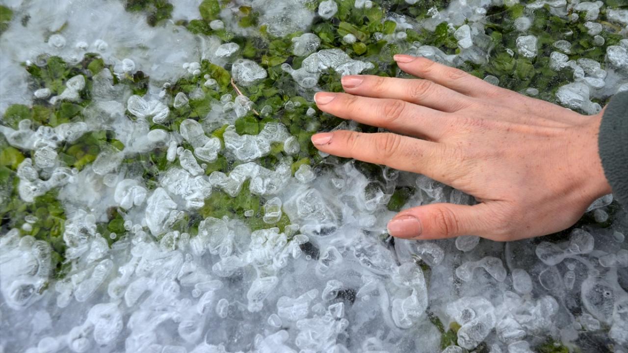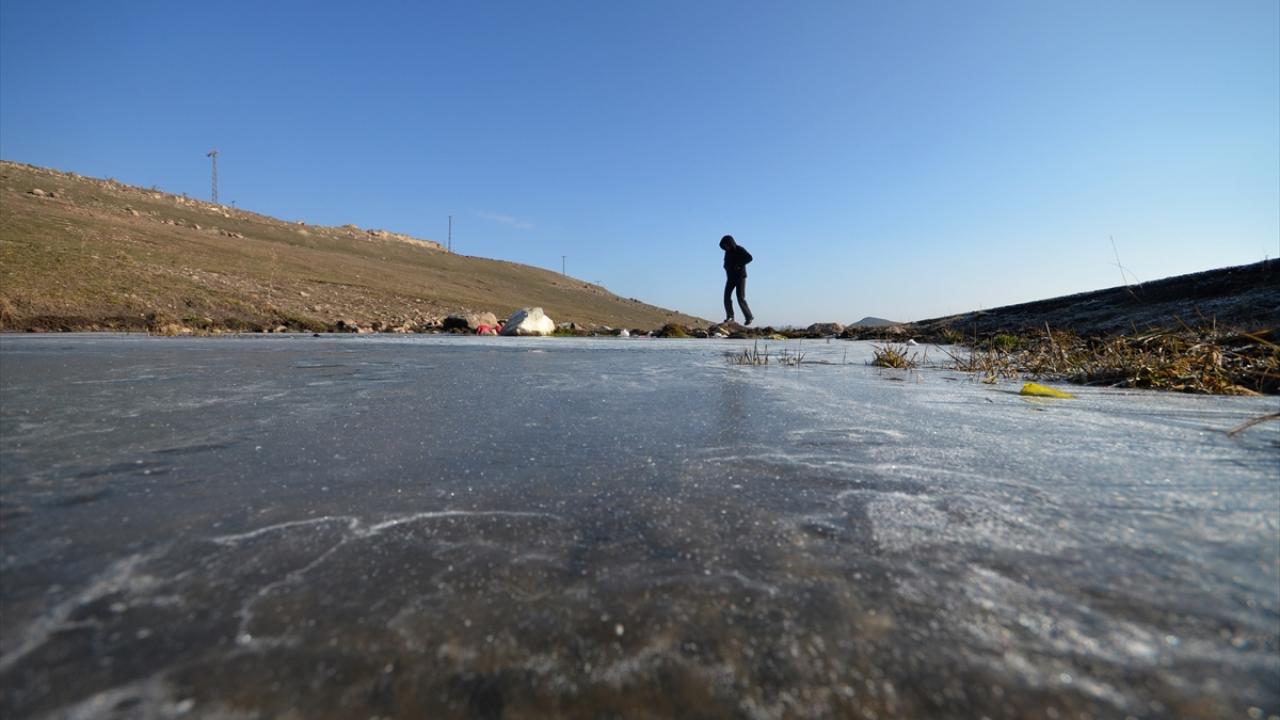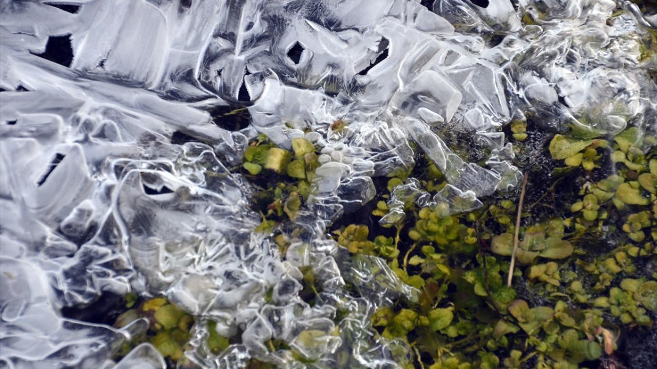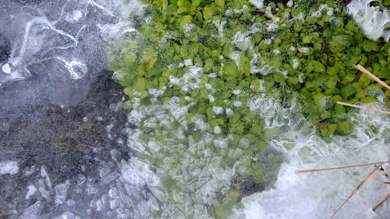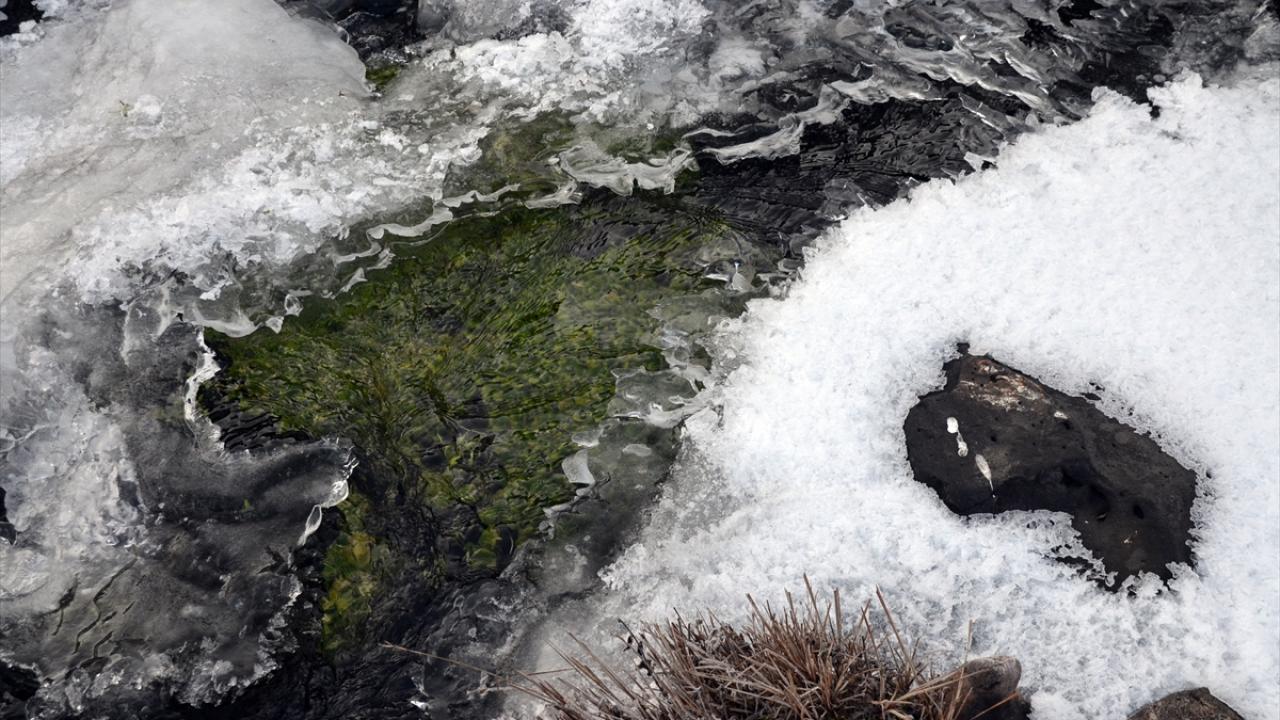 Sarıkamış ilçesindeki Acısu Deresi de soğuğun etkisiyle buz tuttu.