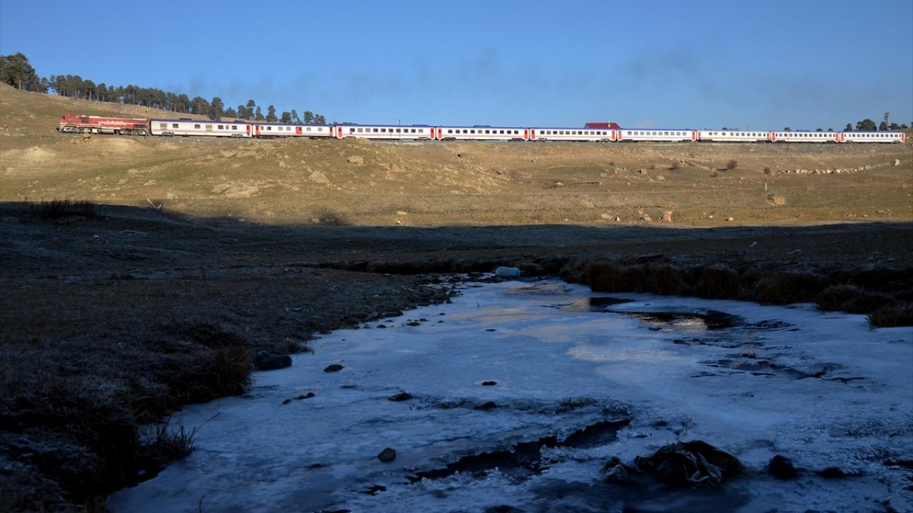 Dere kenarından geçen Doğu Ekspresi Treni ile donan dere ve kırağı tutan bitkilerin bütünleşmesi güzel görüntüler oluşturdu.