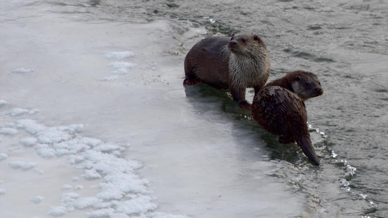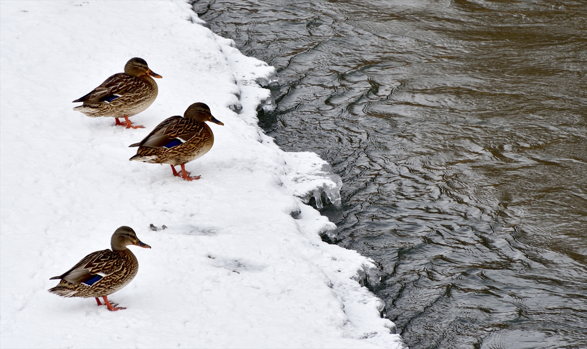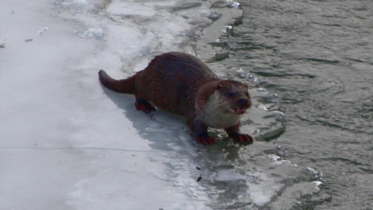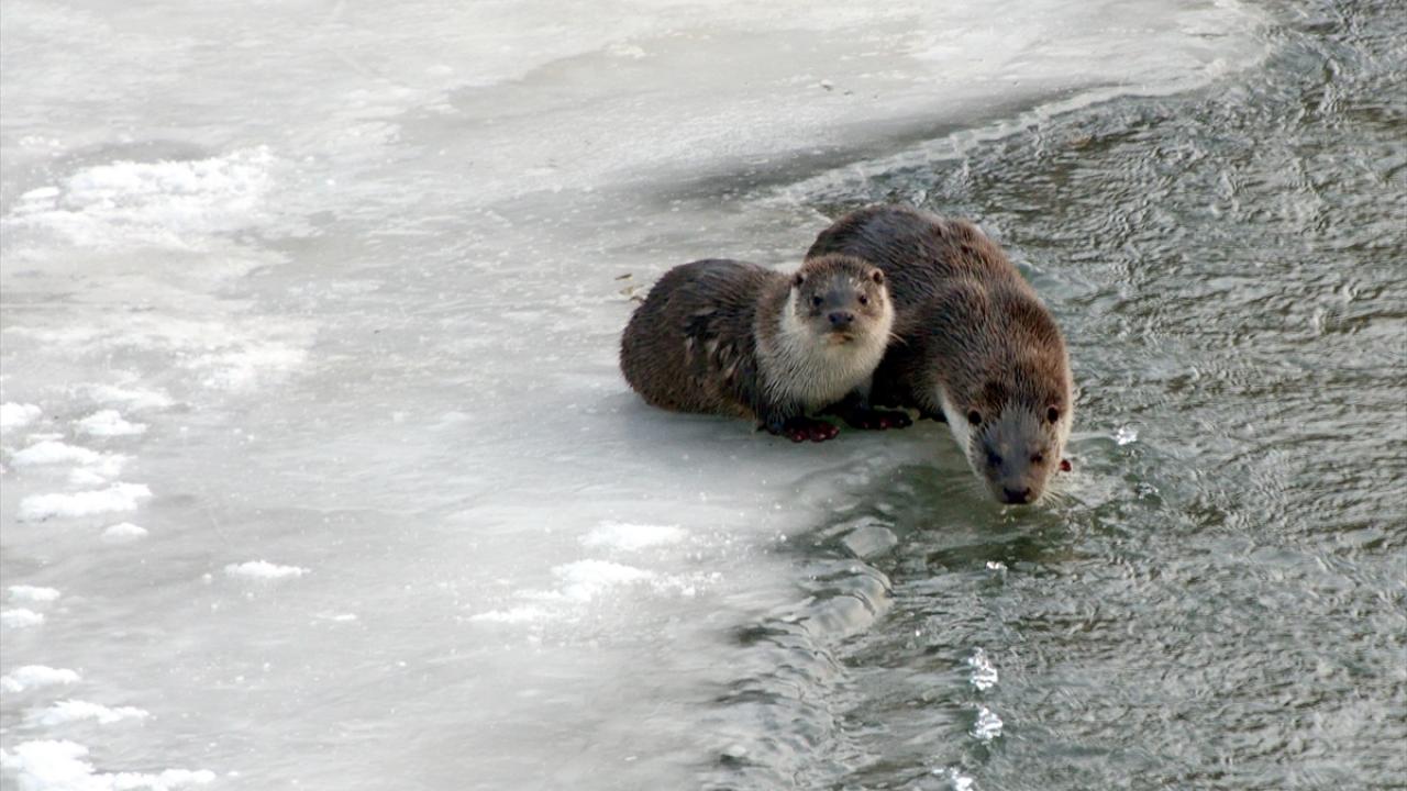 Kars'ta etkili olan kar yağışı ve dondurucu soğuklar nedeniyle yiyecek bulmakta güçlük çeken su samurları ve ördekler, yiyecek bulmak için Kars Çayı'nın Kafkas Üniversitesi yerleşkesindeki donmayan bölümlerine akın etti.