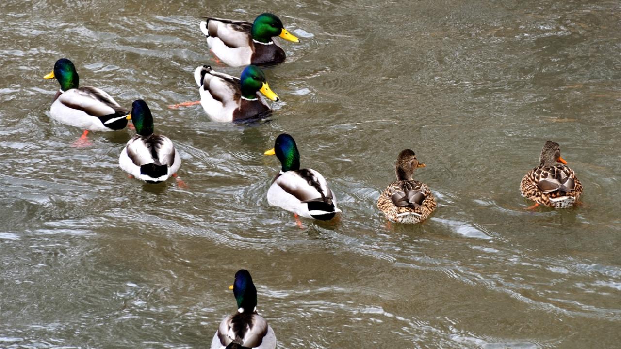 Bu sebeple Kars Çayı`nın donmayan sularını mesken tutan su samurları ve yeşil başlı ördekler, akan çayda yiyecek aradı.