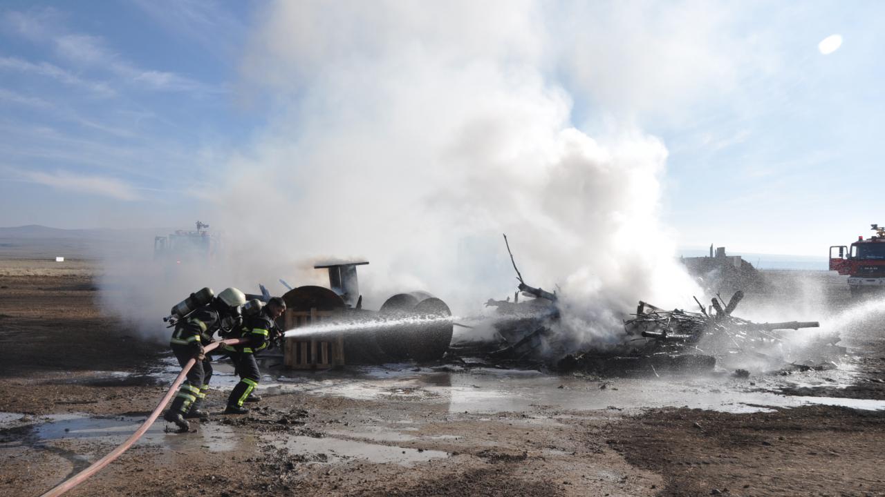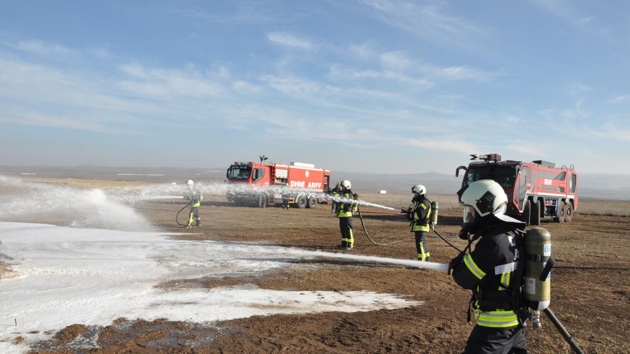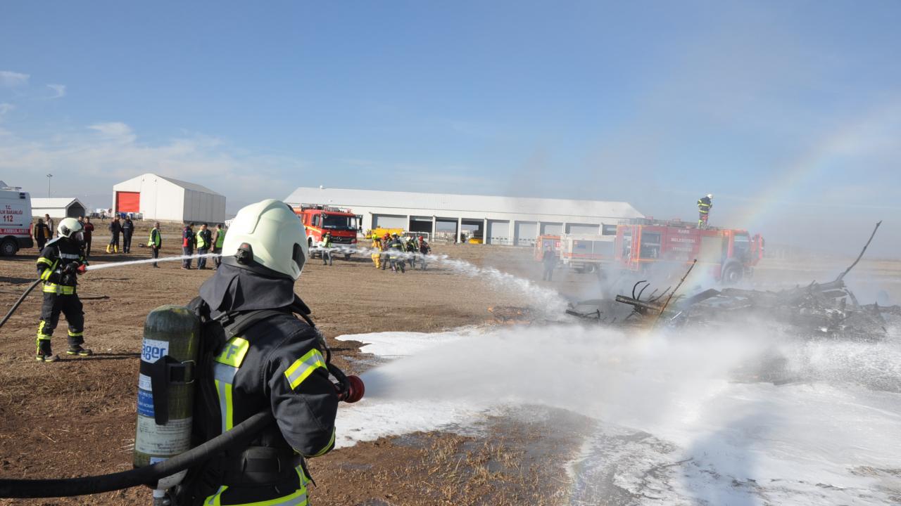 Polis ekipleri olay yerinde çevre güvenliği aldı. Tatbikatta, ekipler bir yandan yangına müdahale etti, bir yandan da yaralıların kentteki hastanelere sevkini sağladı.