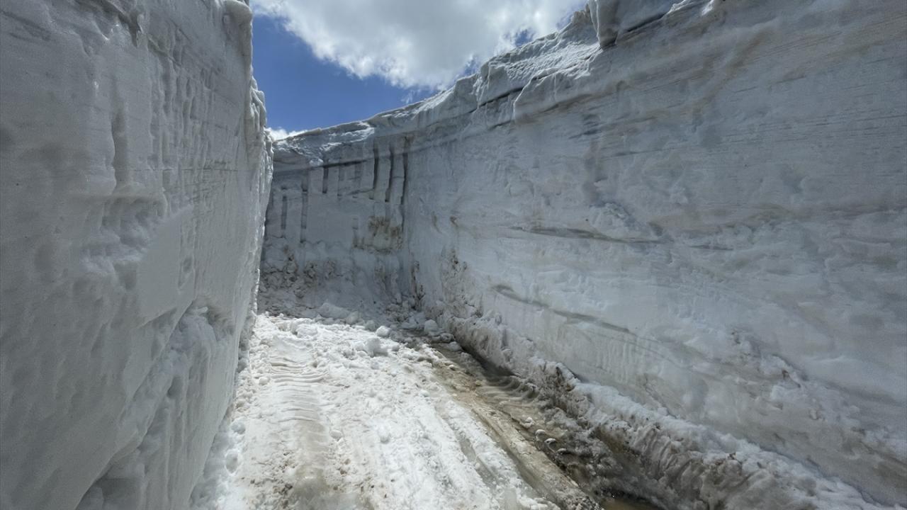 Hayvanlarını meralara çıkaran besicilerin mağduriyet yaşamaması için haziranda yayla yollarını açan ekipler, yer yer 5 metreyi bulan karla mücadele ediyor.