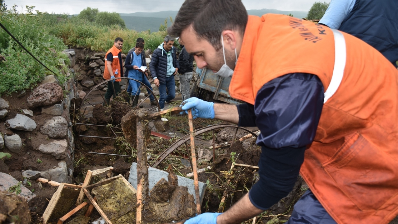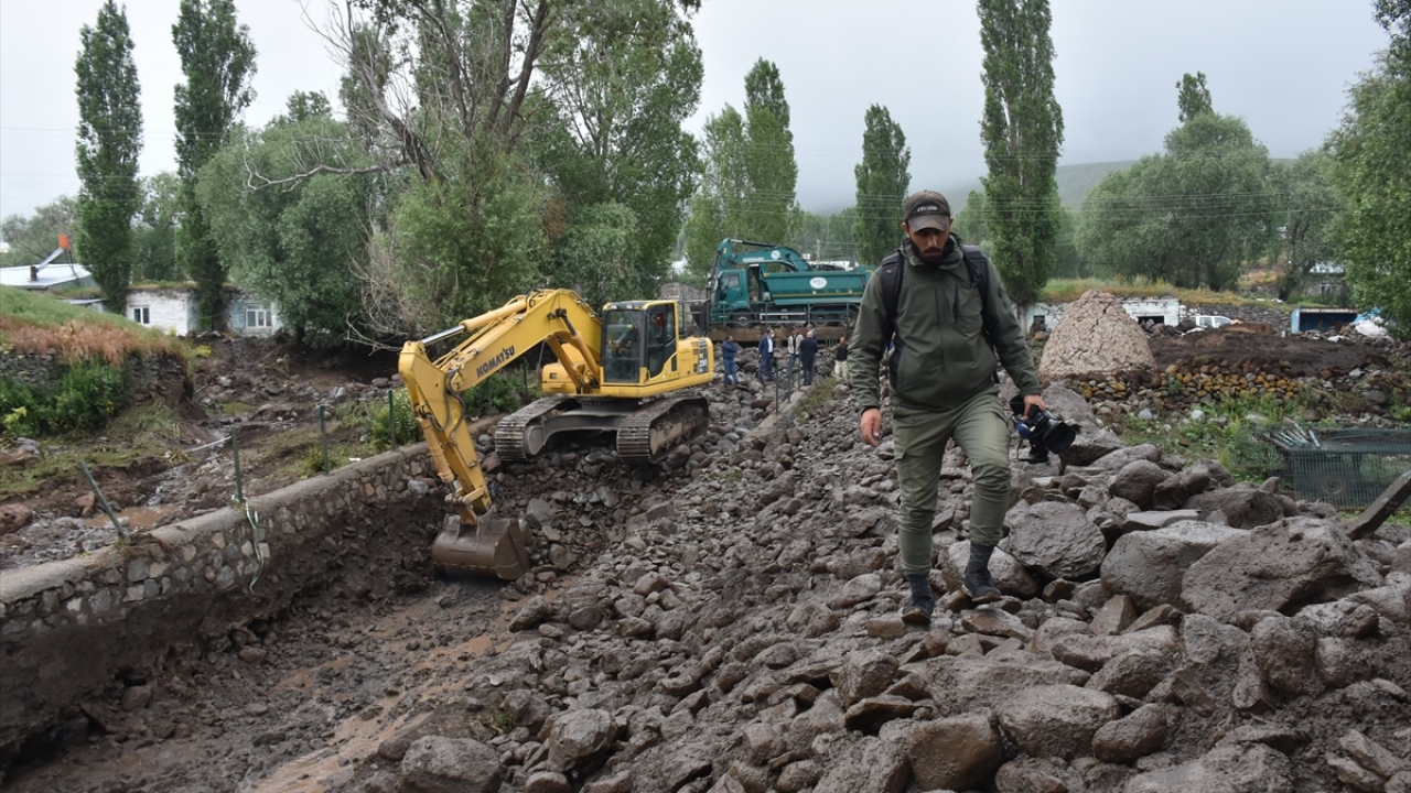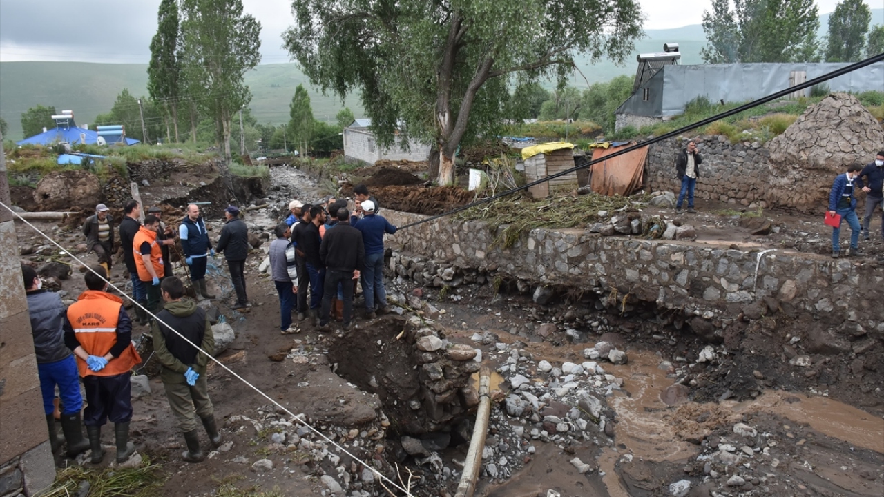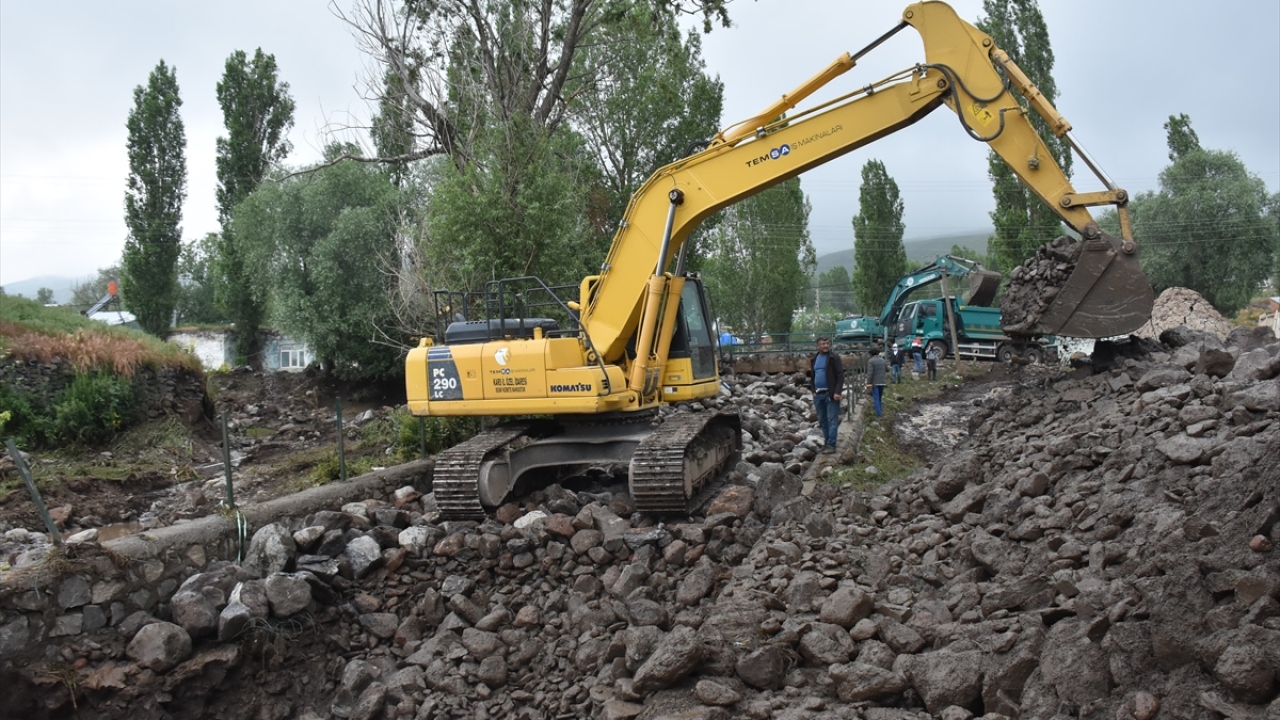 Kars ve Ağrı'da dün etkili olan sağanak nedeniyle meydana gelen selde zarar gören köylerde ekiplerce başlatılan çalışmalar sürüyor.