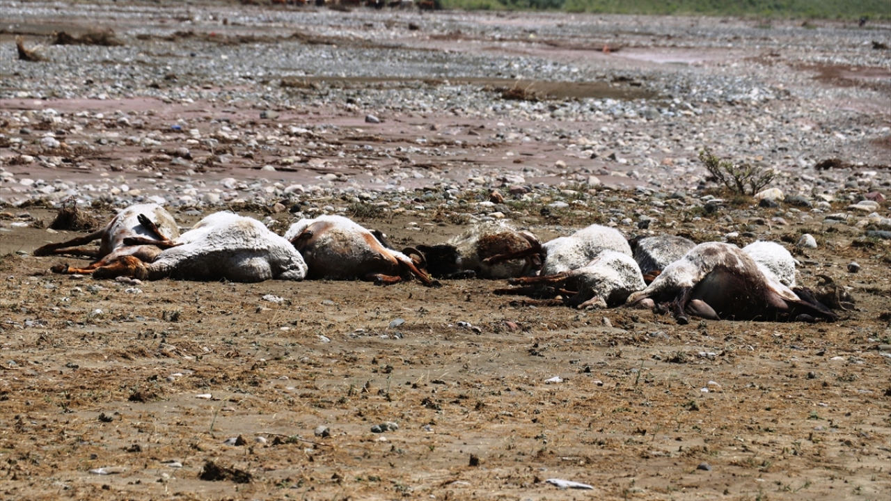 Ağrı`da da 2 gündür etkili olan sağanak sonrası meydana gelen selde 100`e yakın koyunu telef olan göçerler, yaralarını sarıyor.