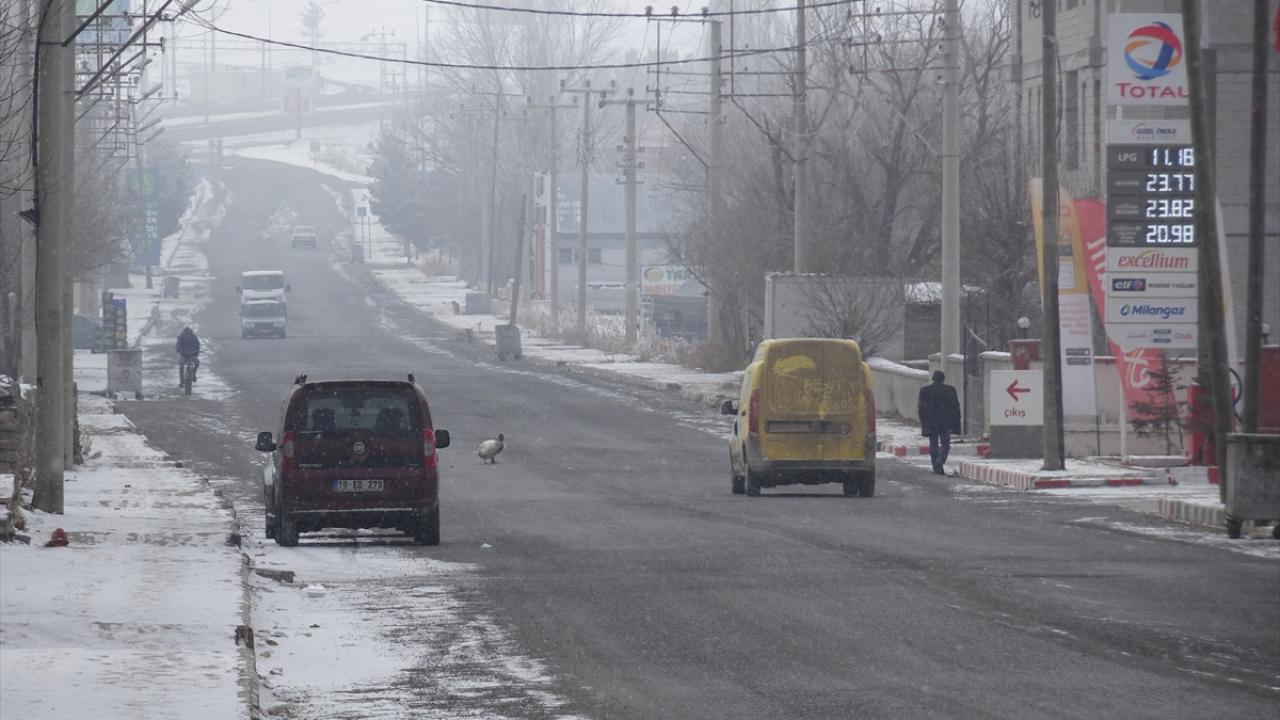 Göle ilçesinde de dondurucu soğuklar yol ve kaldırımların buz tutmasına neden oldu, ağaçlar kırağıyla kaplandı.