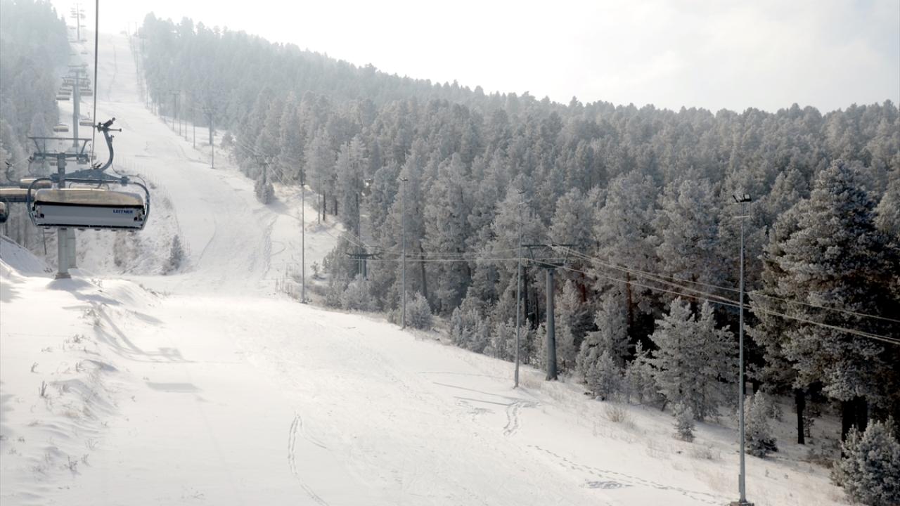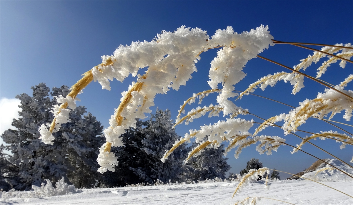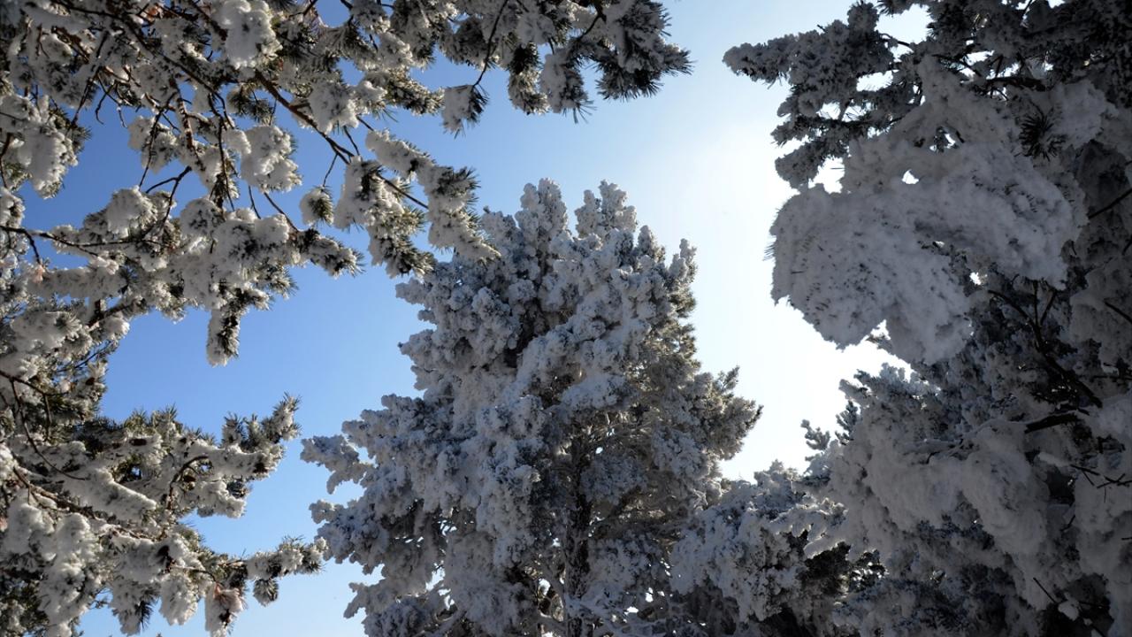 Cıbıltepe Kayak Merkezi`nde, pistler bölgesinde bulunan sarıçam ormanlarındaki ağaçları kırağı kapladı.