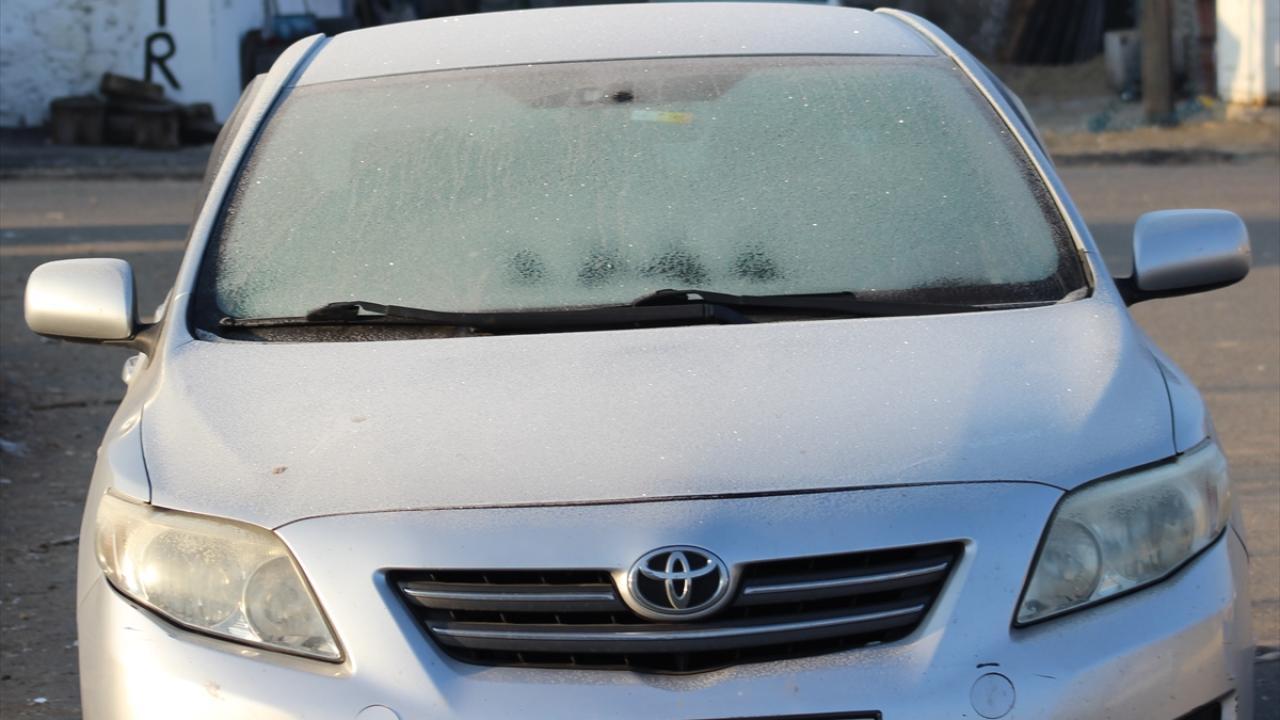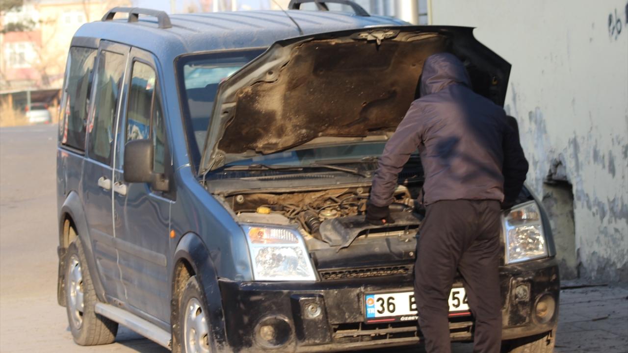 Akyaka ilçesinde soğuk hava nedeniyle bazı araçlar dondu.