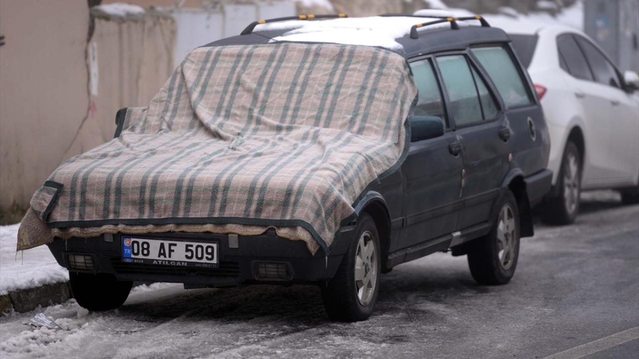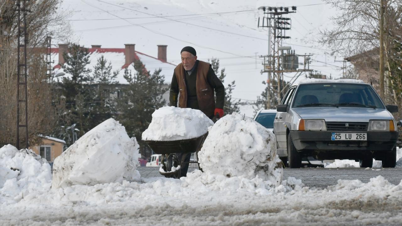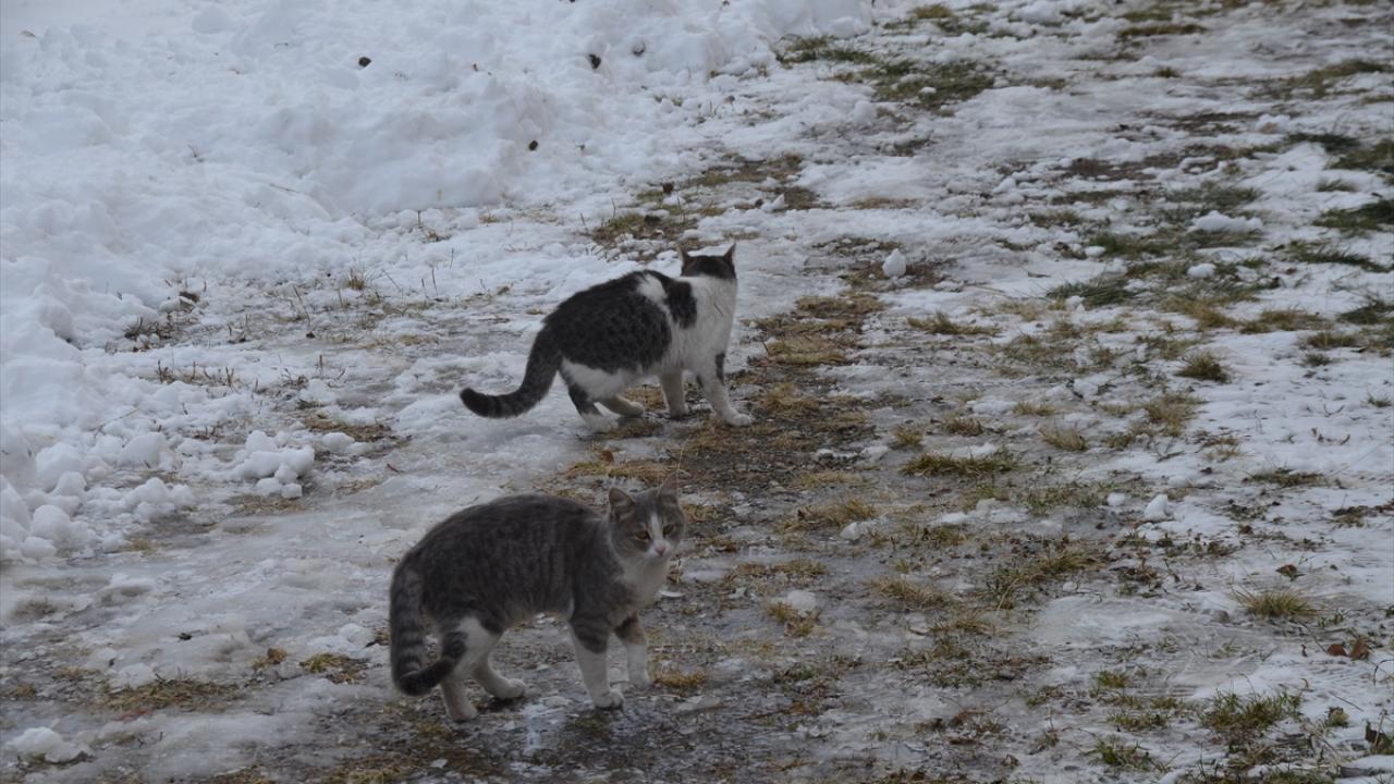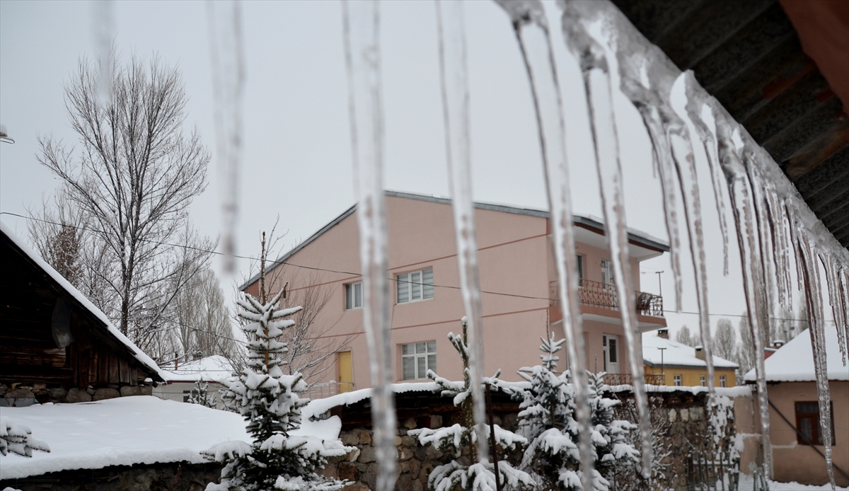 Kars'ın Sarıkamış ilçesinde etkili olan kar yağışı ve soğuk hava hayatı olumsuz etkiledi.