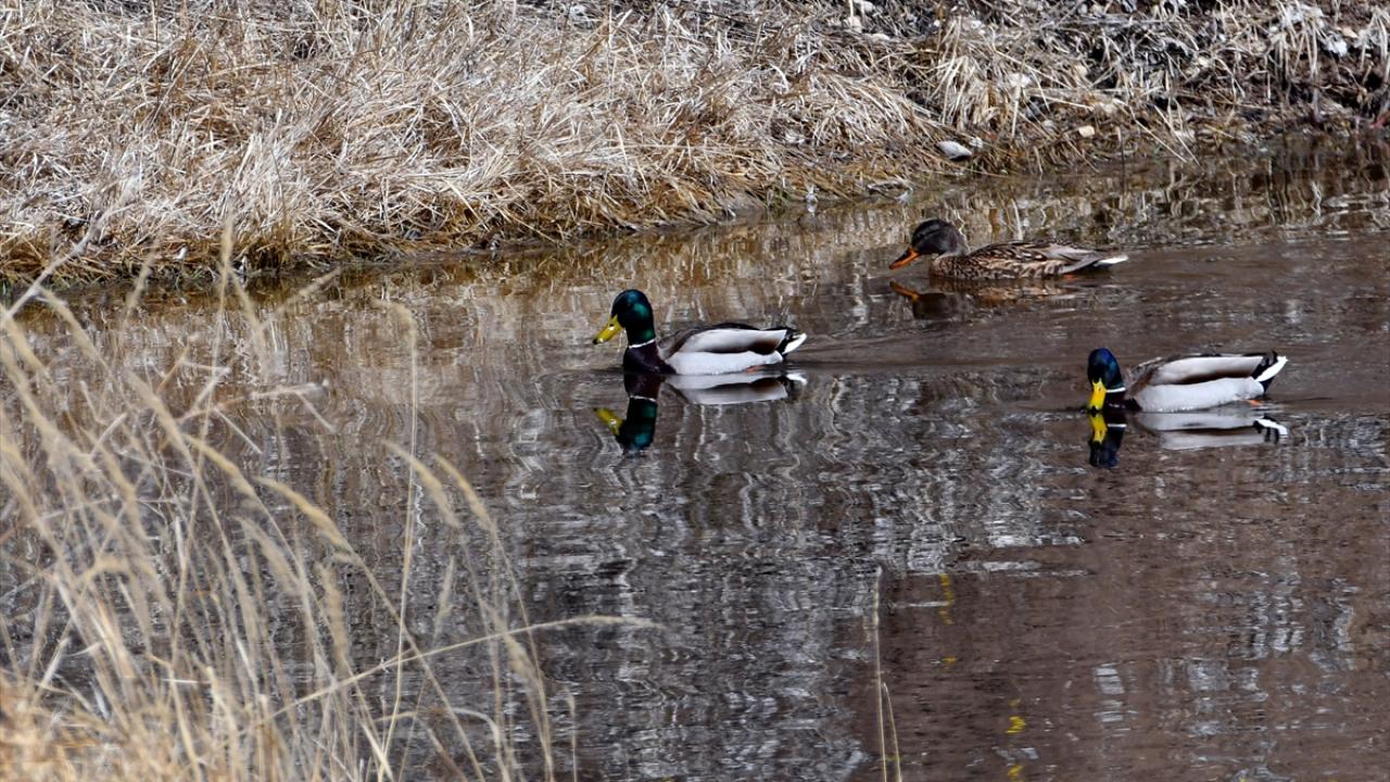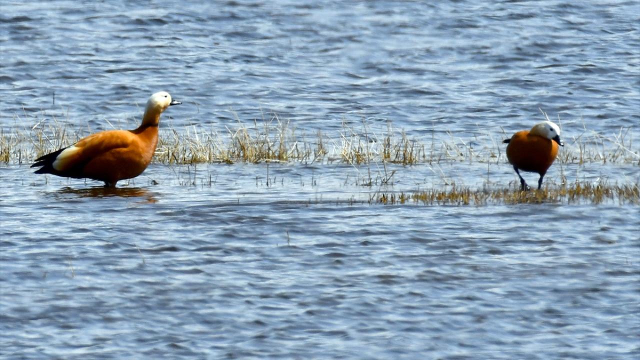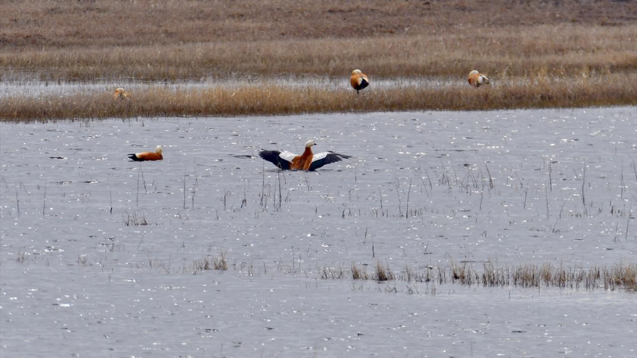 Ayrıca ilçede oluşan göletlerde yaban kuşları yiyecek ararken görüntülendi.