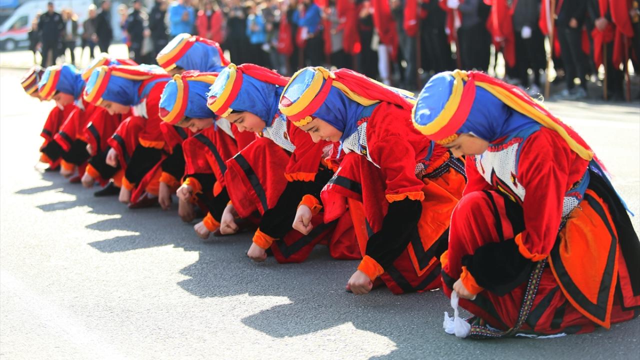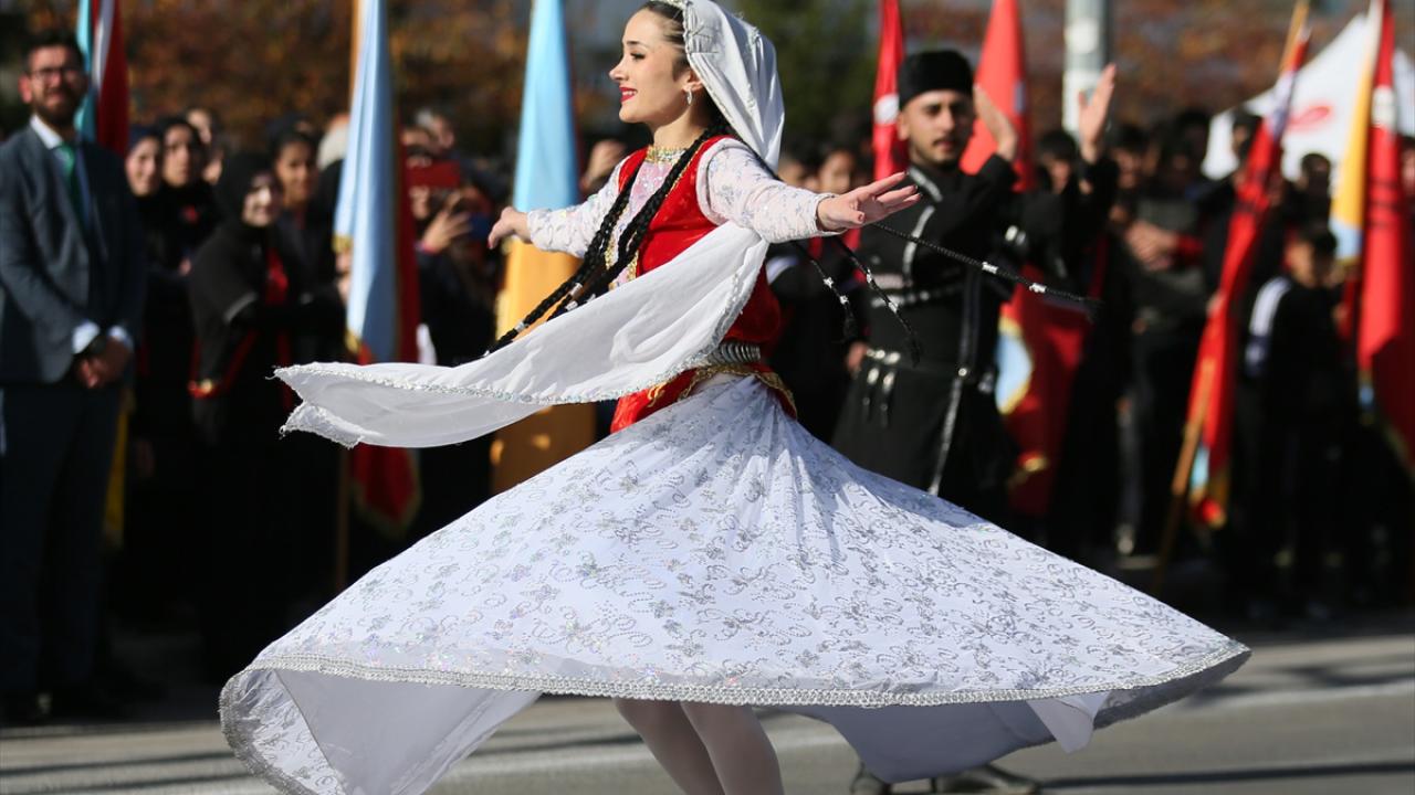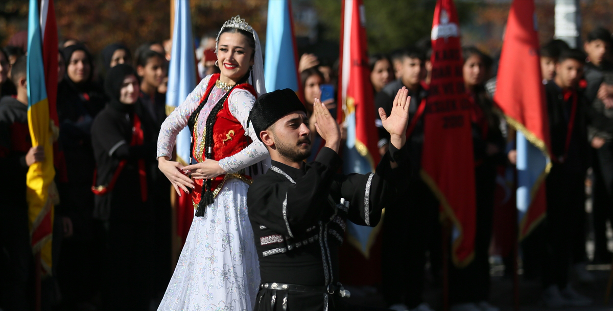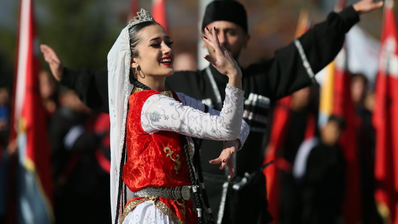 Saygı duruşu ve İstiklal Marşı`nın ardından halk oyunları gösterisi sunuldu.