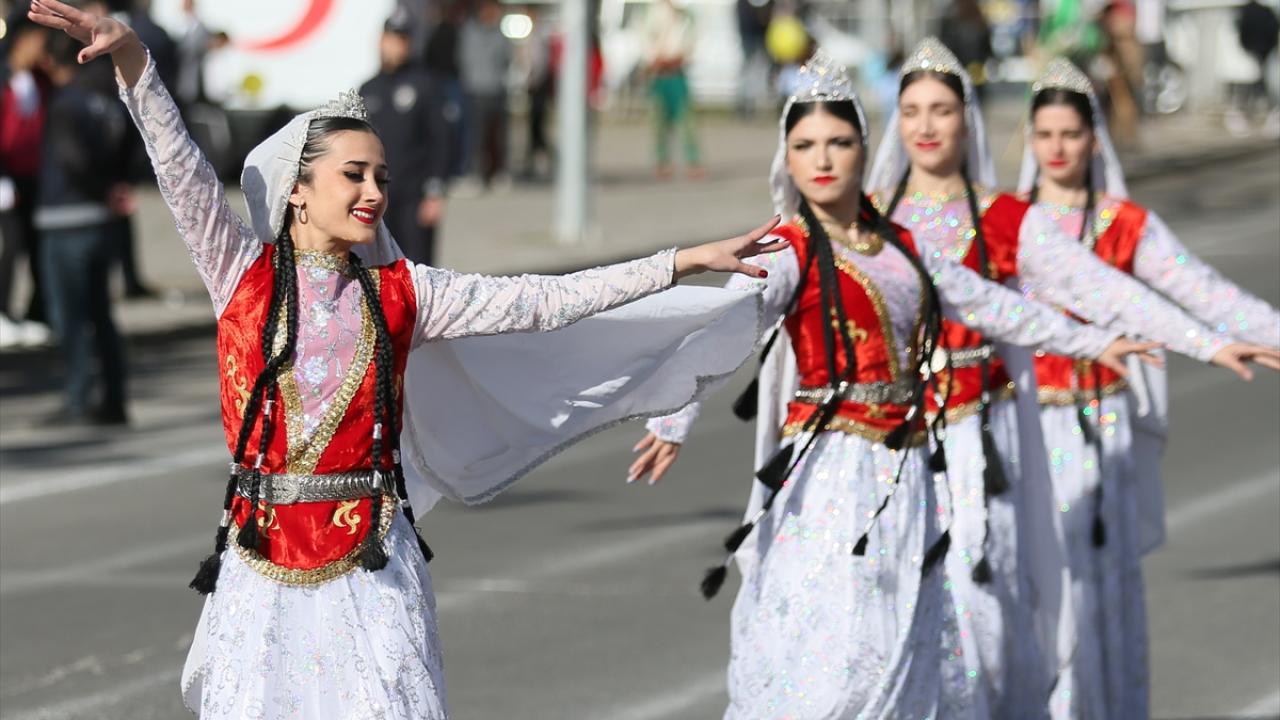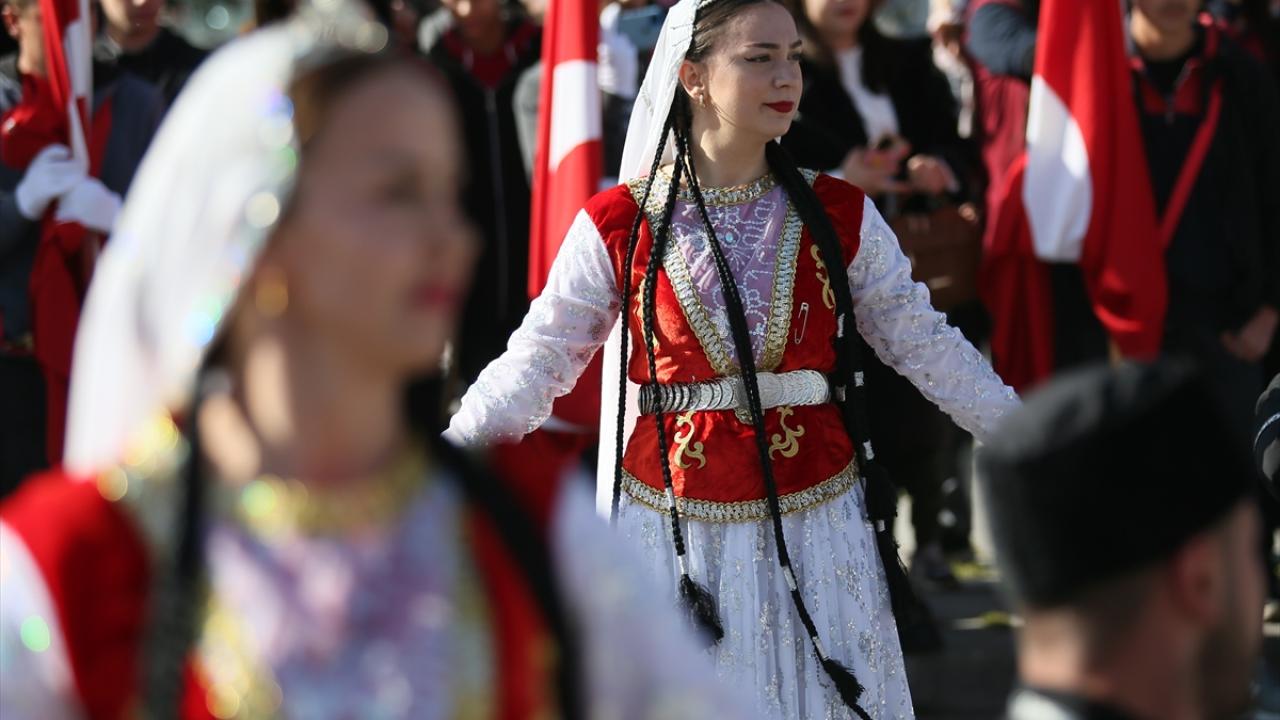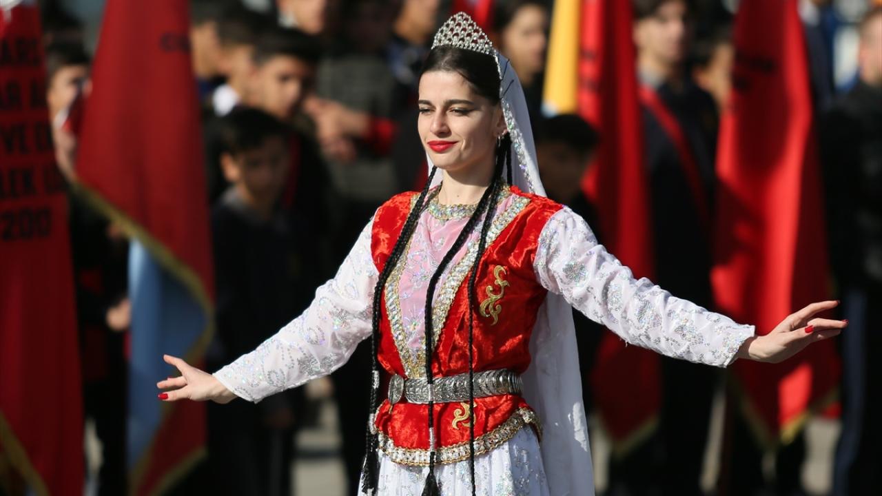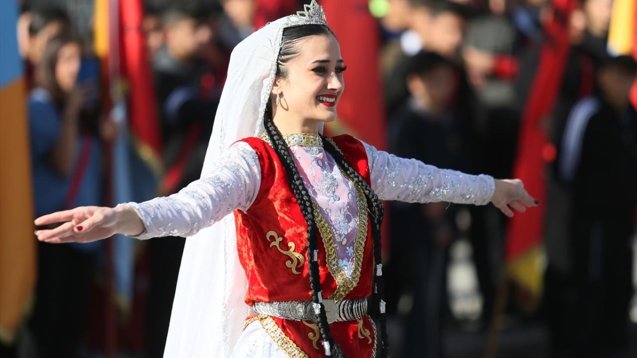 Saygı duruşu ve İstiklal Marşı`nın ardından halk oyunları gösterisi sunuldu.