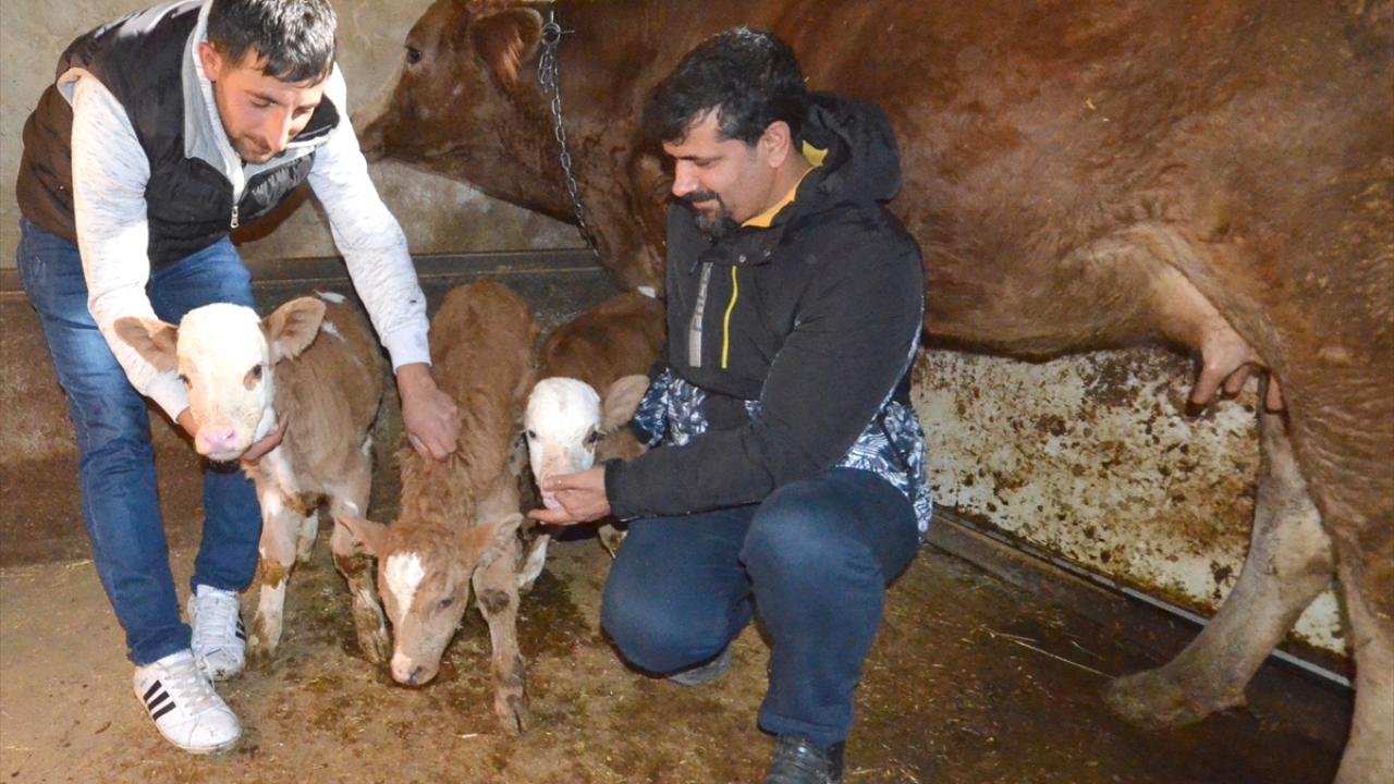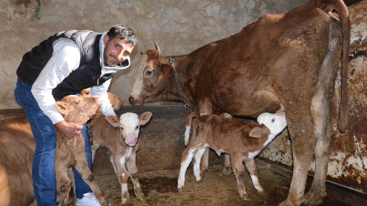 Gebe kalan inek, yaklaşık 10 gün önce normal ve sağlıklı doğumla bir batında üçüz buzağı dünyaya getirdi.