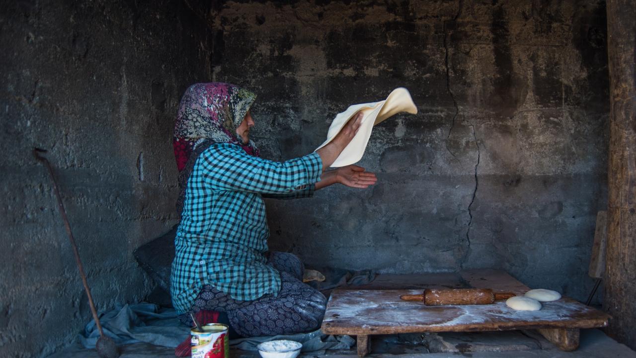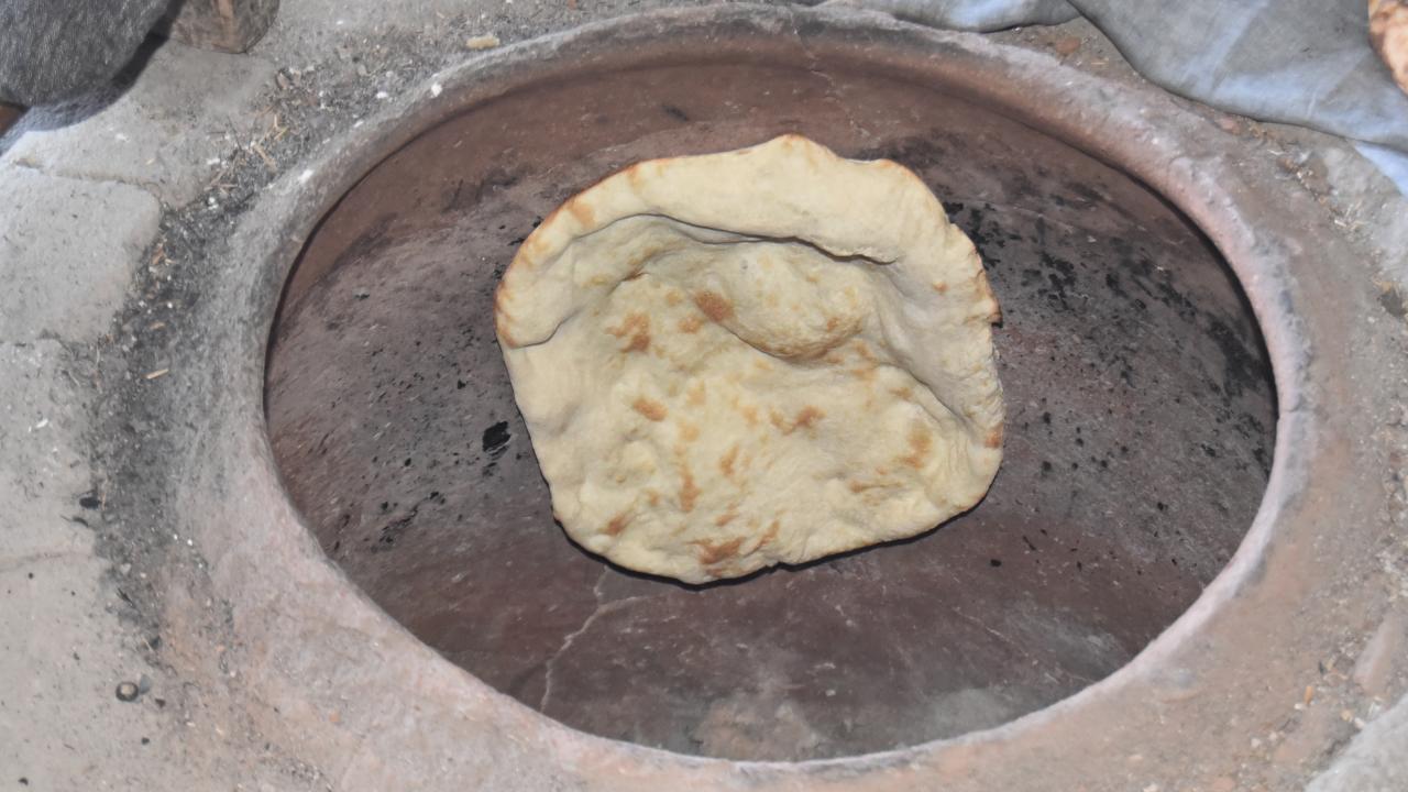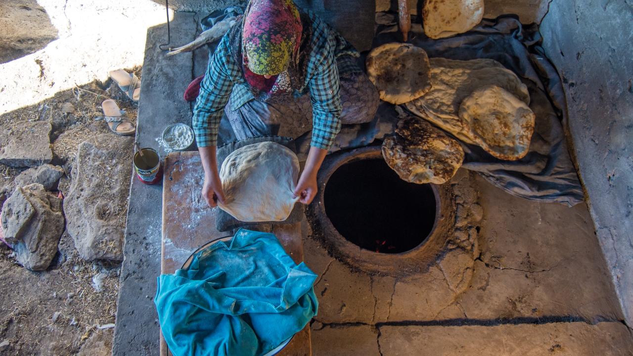 Kadınlar, hamur topaklarını bitirdikten sonra evlerinin yakınlarında bulunan kulübelerdeki tandırları yakarak ekmek pişirmeye hazır hale getiriyor.