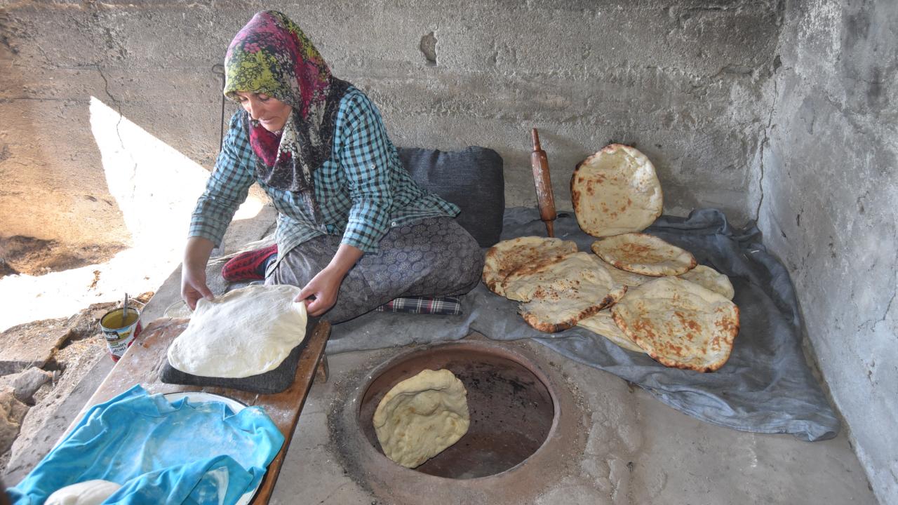 Kendi ektikleri buğdayları değirmende öğüterek un elde eden kadınlar, havaların soğumasına rağmen tandır ekmeği uğraşısından vazgeçmiyor.