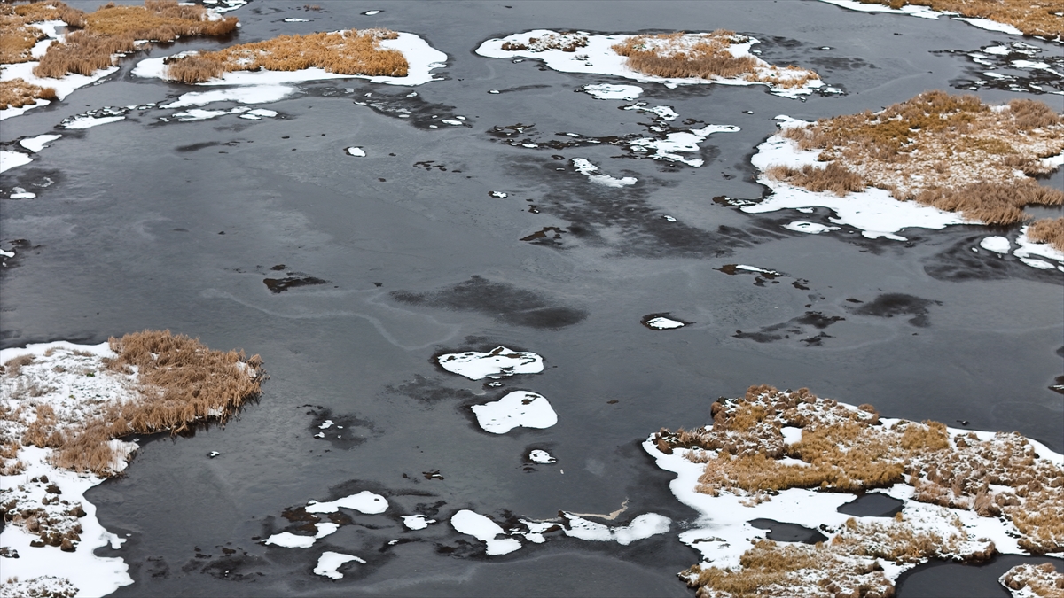 Kars'ta, 2 bin 237 rakımda bulunan Çalı Gölü'nde, soğuk havanın etkisiyle buzlanma oluştu. Endemik bitki türlerinin bulunduğu ve 2016'dan itibaren `ulusal öneme haiz sulak alan` olarak koruma altında bulunan gölün çevresi de karla kaplandı.