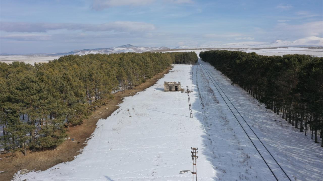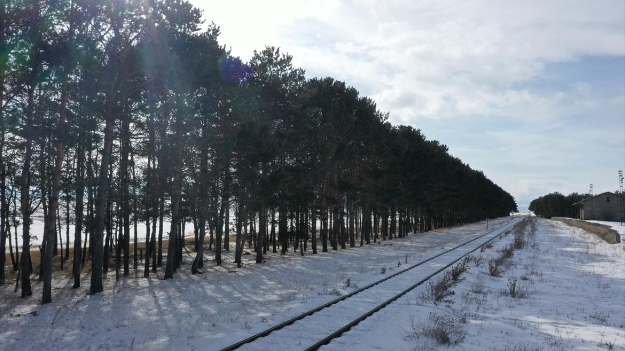 TCDD tarafından 1969 yılında, Doğu Anadolu`daki yoğun kar yağışının rayları olumsuz etkilemesini engellemek amacıyla binlerce çam fidanının dikilmesiyle ağaçlandırılan Benli Ahmet Tren İstasyonu`nun çevresi, beyaza büründü.