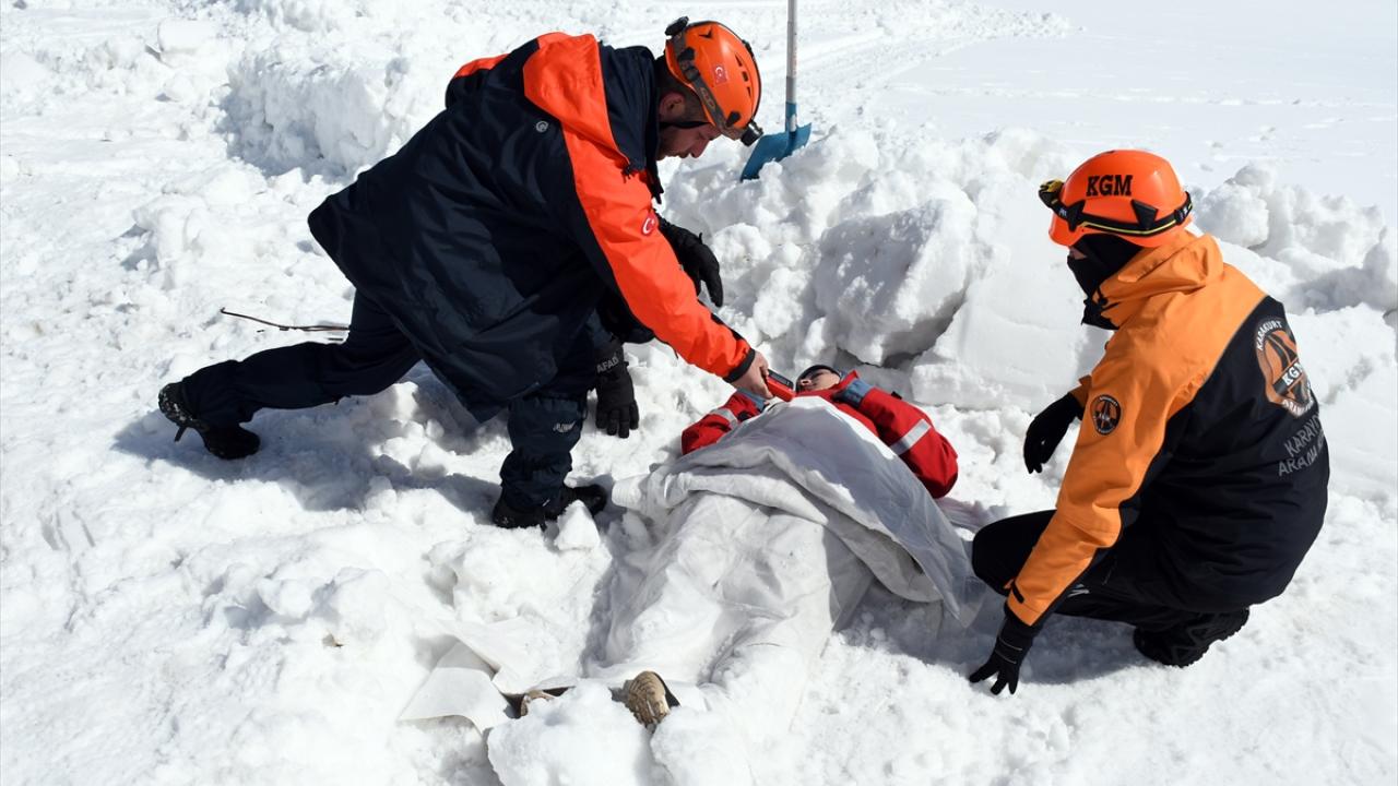 Yetkililere bilgi verilmesi üzerine, görevli motorize UMKE, AFAD ve JAK timleri, kısa sürede olay yerine ulaştı. Çevre güvenliğinin jandarma tarafından alınmasının ardından arama kurtarma ekipleri, çubuklarla kar üzerinde arama yaptı. Jandarmaya ait dedektör köpek "Meyre" kar altında kalan vatandaşları buldu.