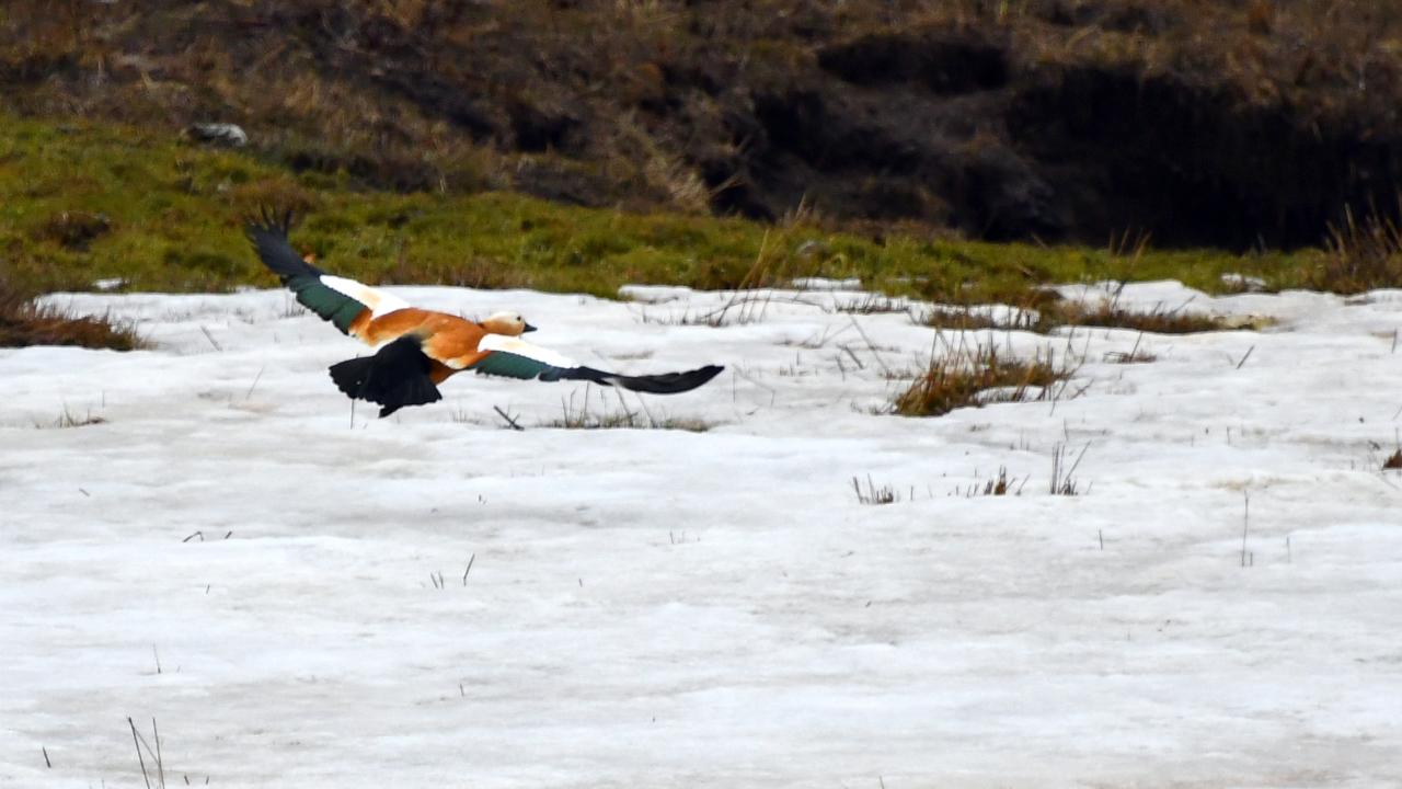 Kars'ın Sarıkamış ilçesinde aralıklarla yağan yağmur, yüksek kesimlerde yerini kara bıraktı.