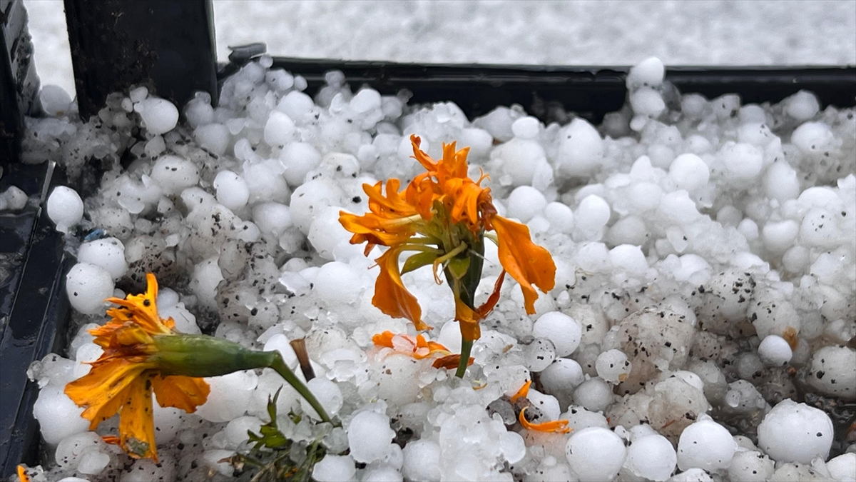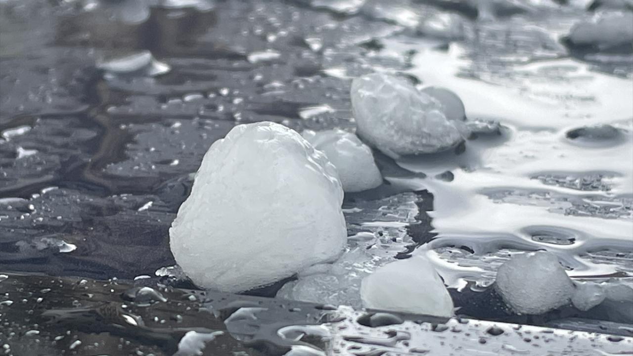 Kars'ta sağanak sonrası dolu etkili oldu.