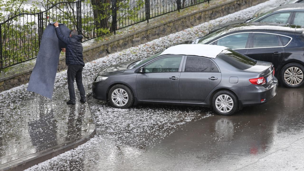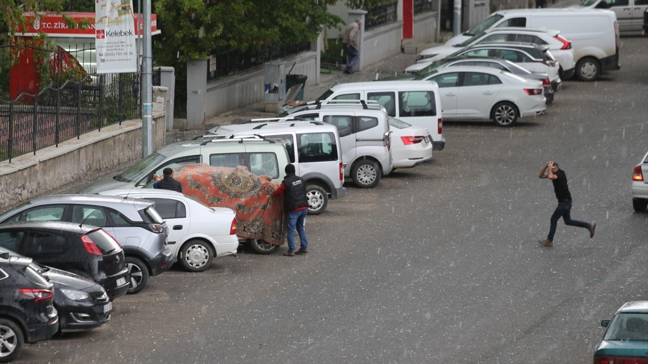 Bazı sürücüler, araçlarının üzerini battaniye ve kartonla örterek doludan korumaya çalıştı.