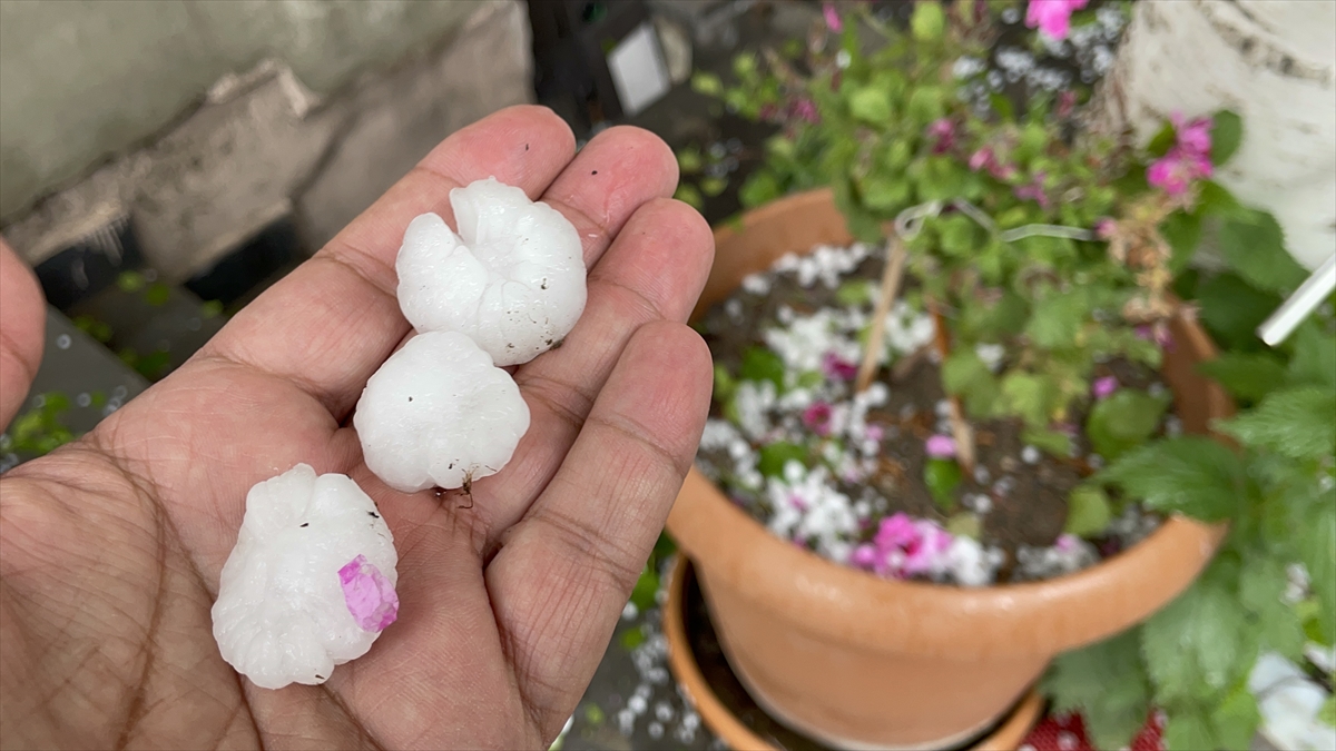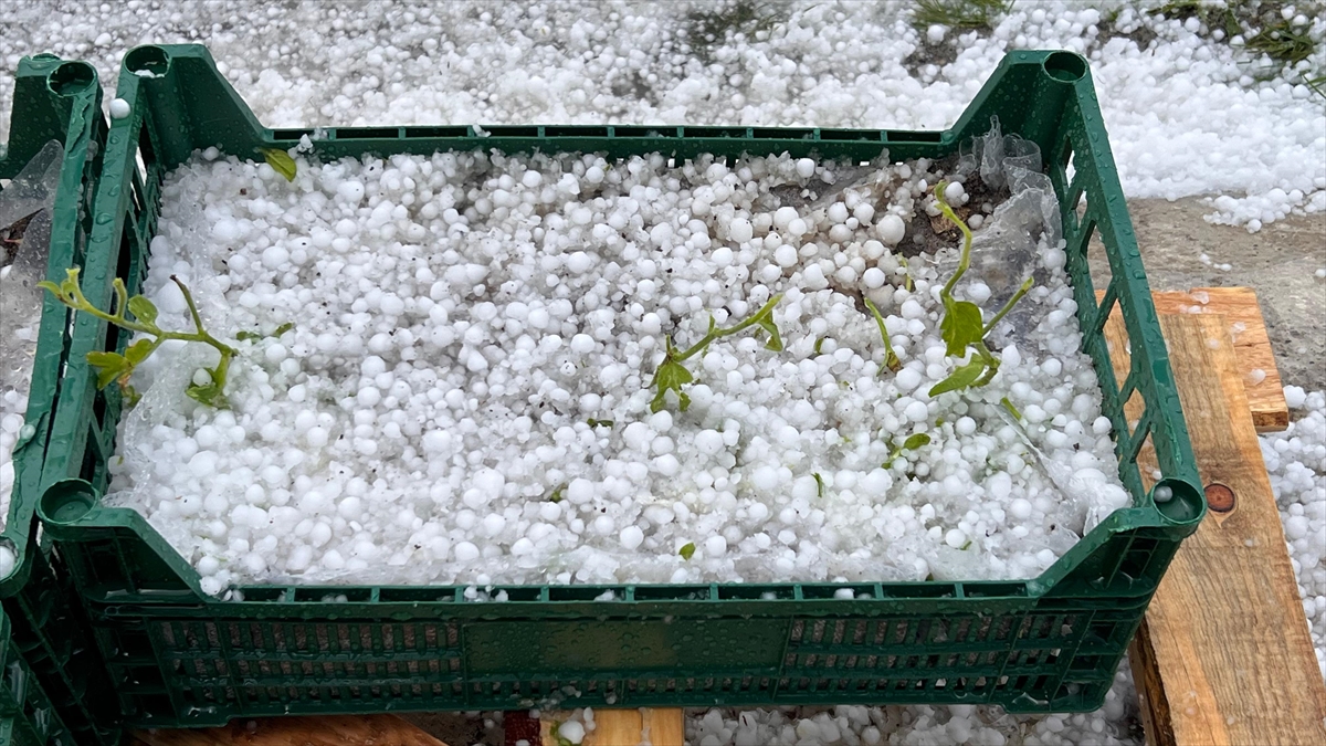 Dolu nedeniyle ağaç dalları kırıldı, bazı noktalarda su birikintileri oluştu.
