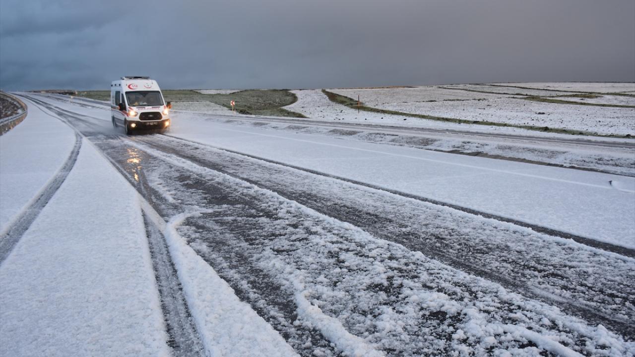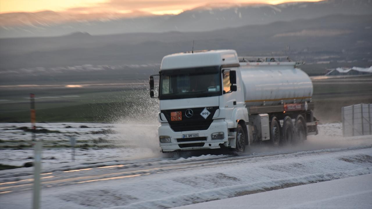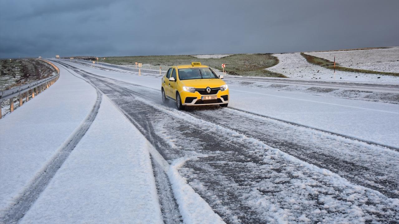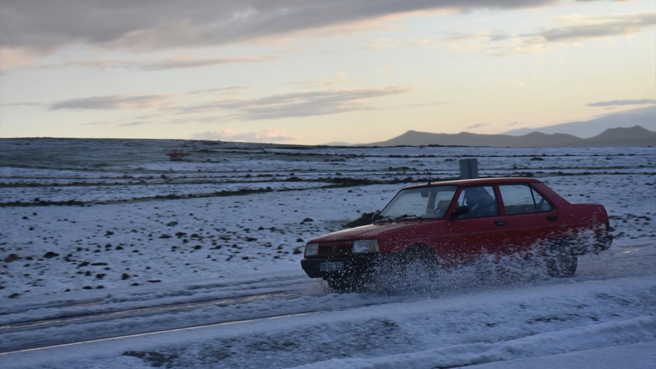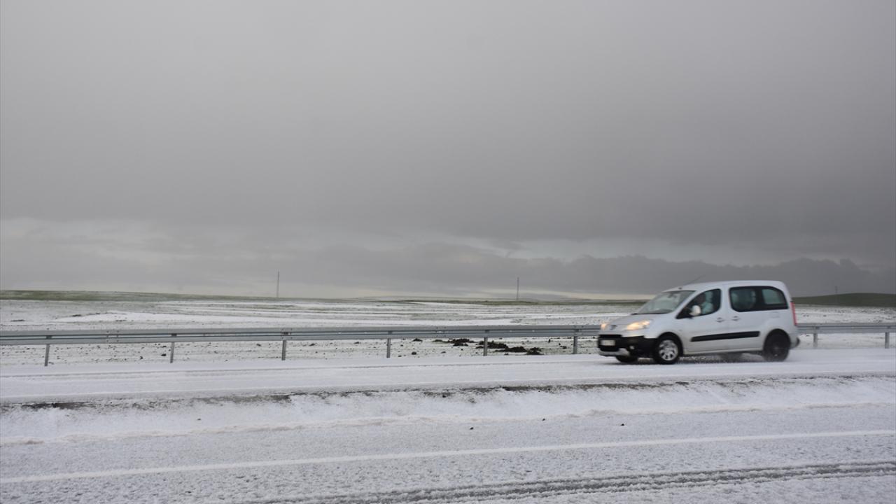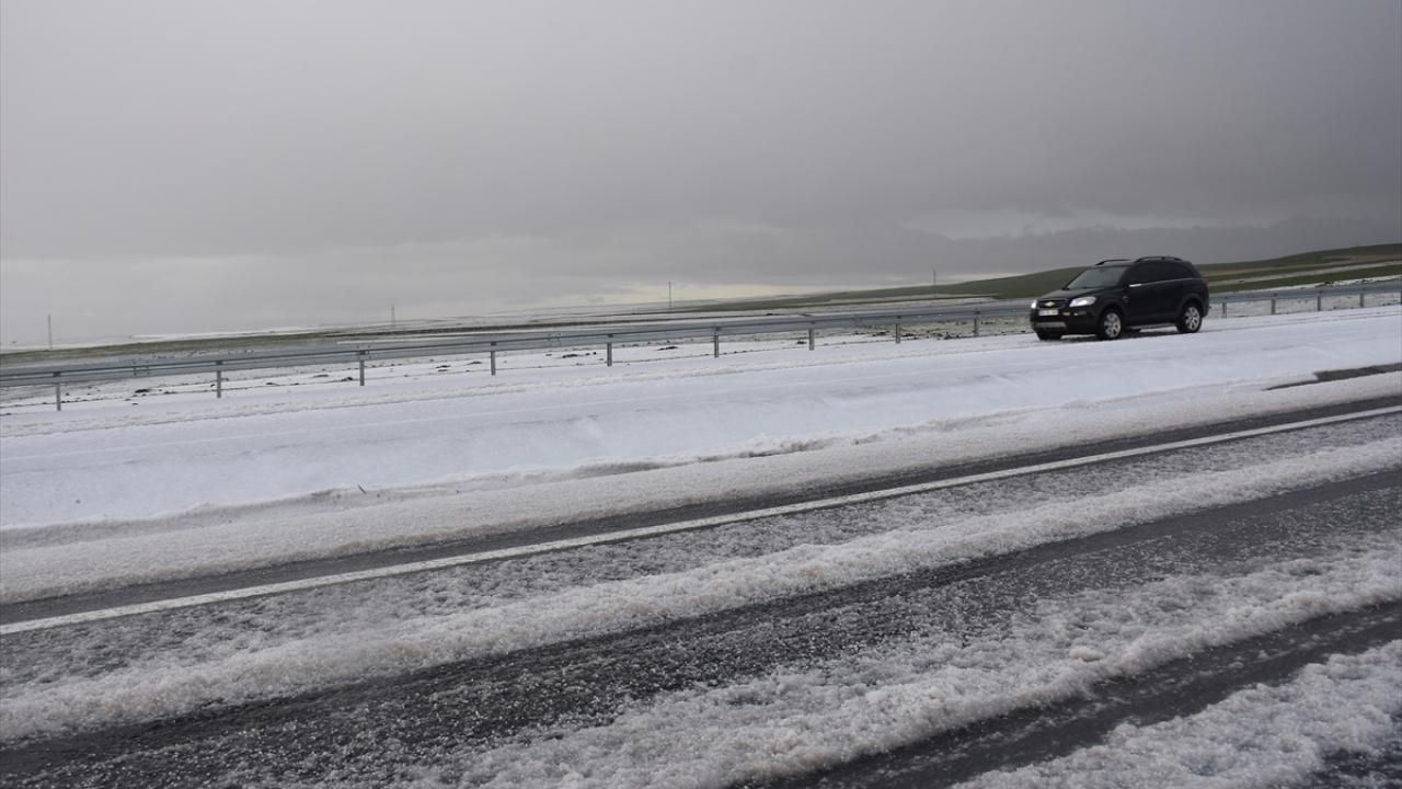 Kars-Iğdır kara yolunda 3 santimetreye ulaşan dolu, sürücülere zor anlar yaşattı.