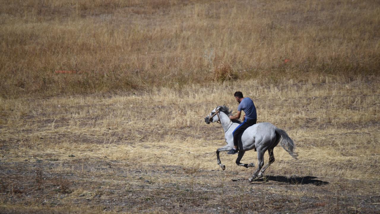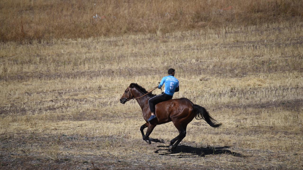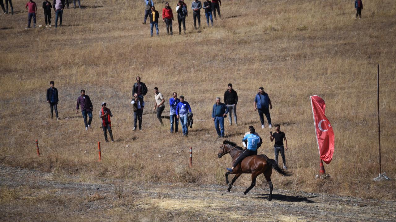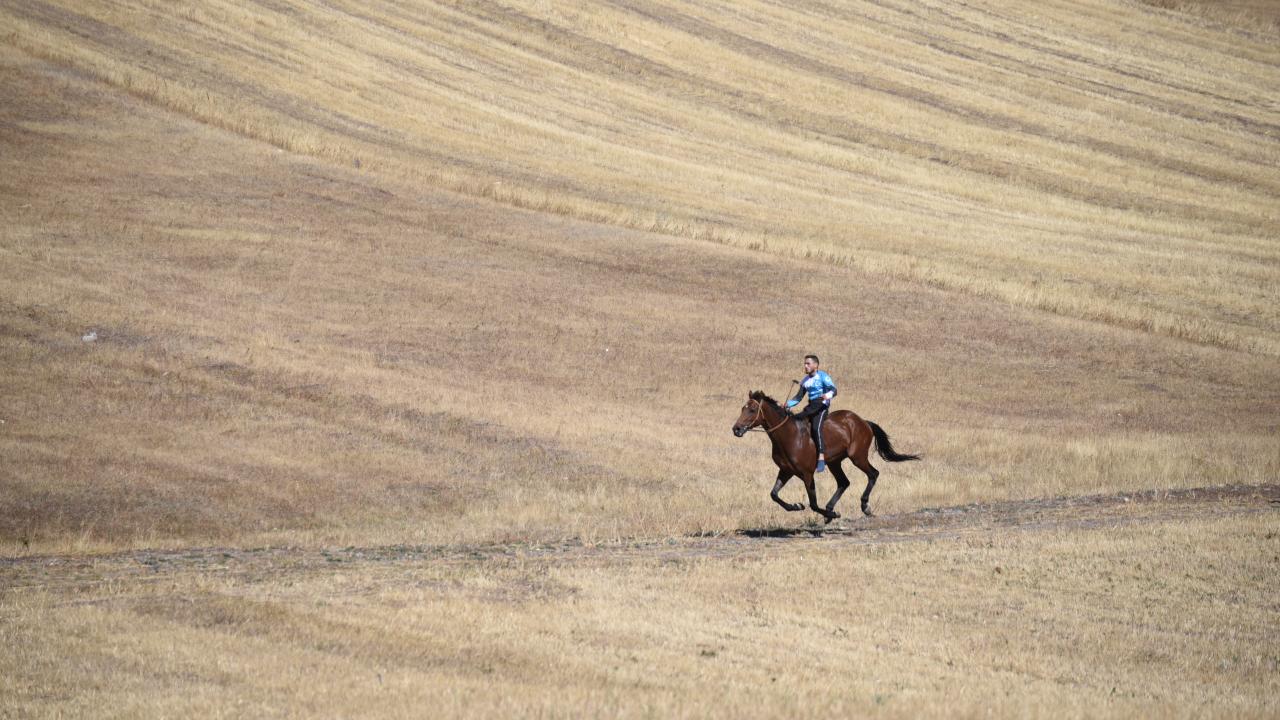 Tarlalar arasındaki yolda atlarını dört nala koşturan sporcuların 5 bin 800 kilometrelik parkurdaki mücadelesi ilgiyle izlendi.