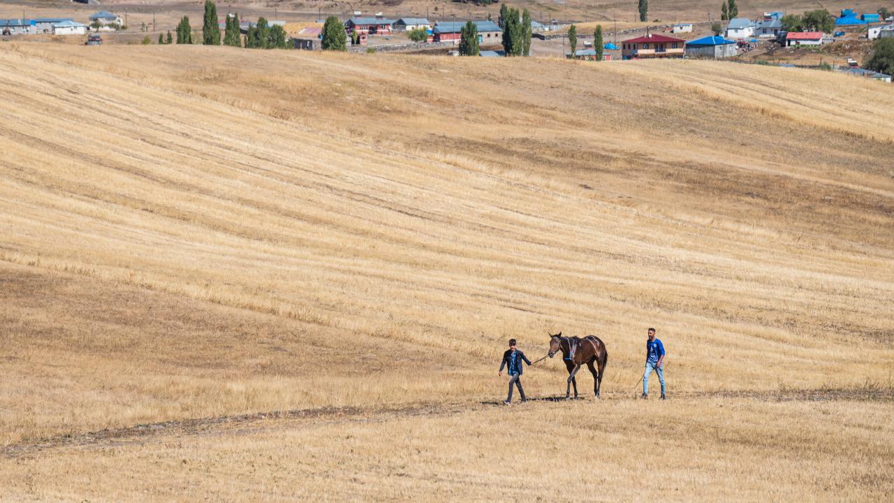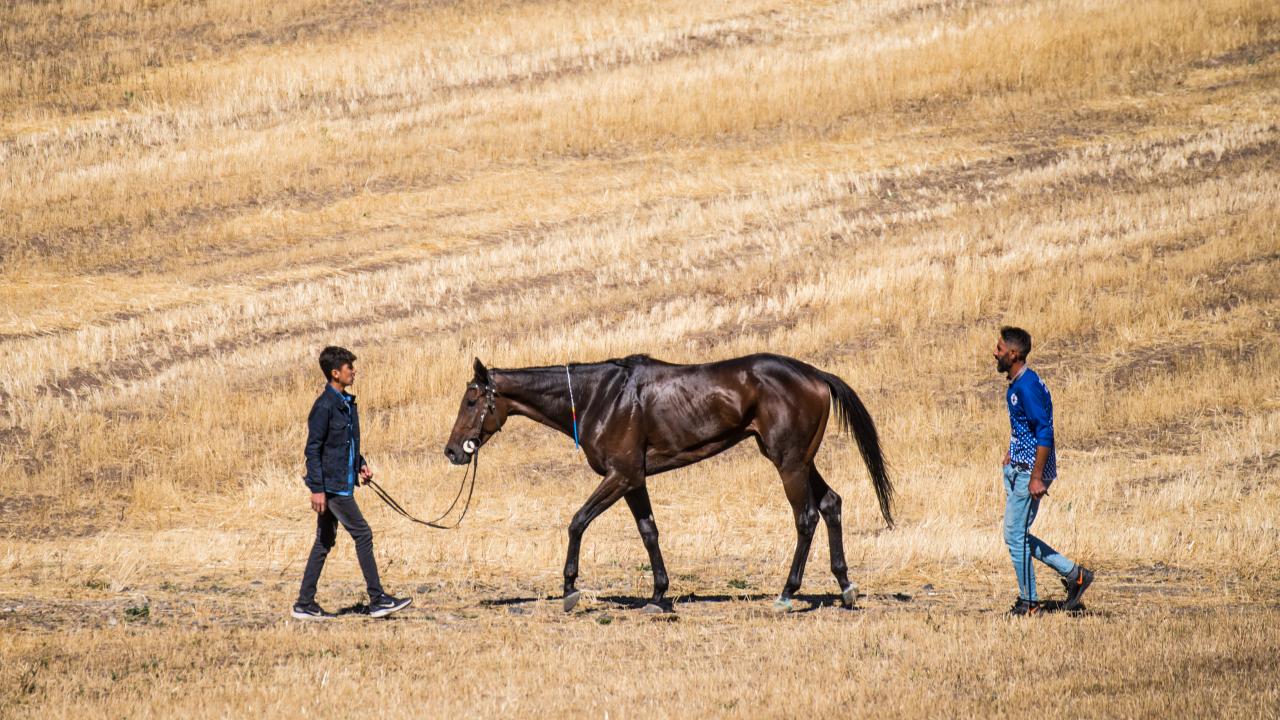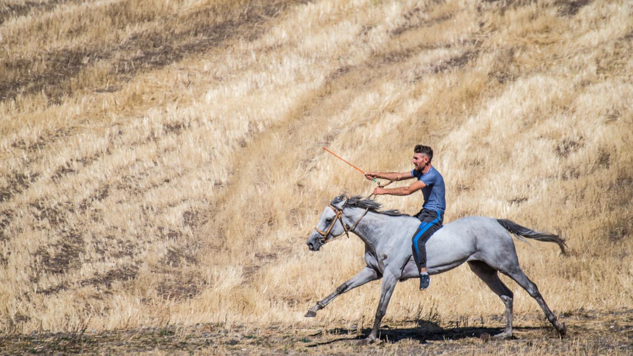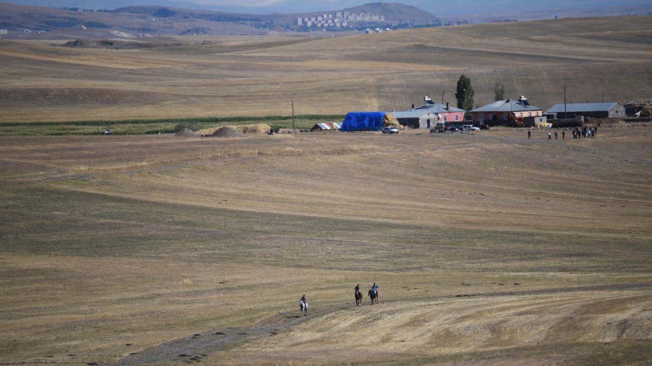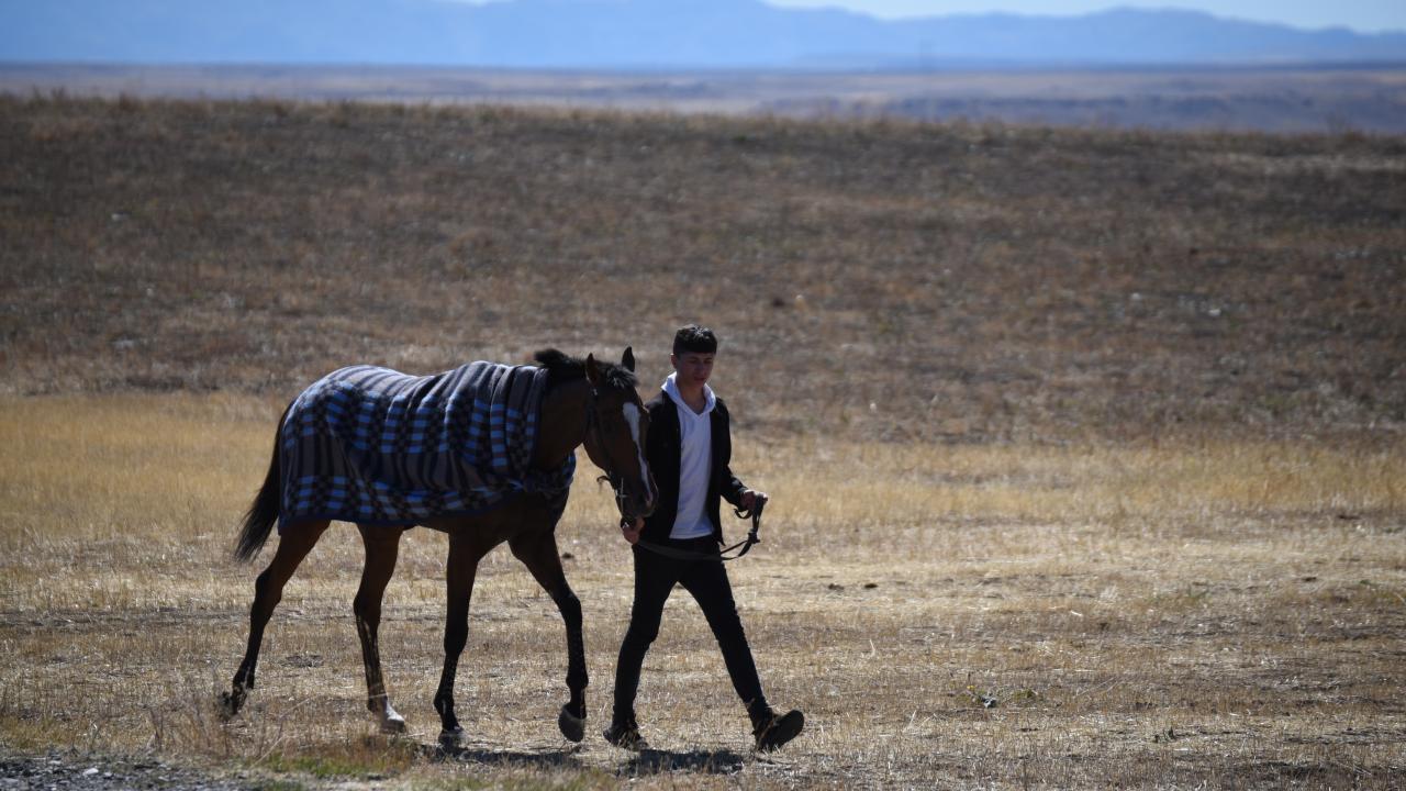 Tarlalar arasındaki yolda atlarını dört nala koşturan sporcuların 5 bin 800 kilometrelik parkurdaki mücadelesi ilgiyle izlendi.