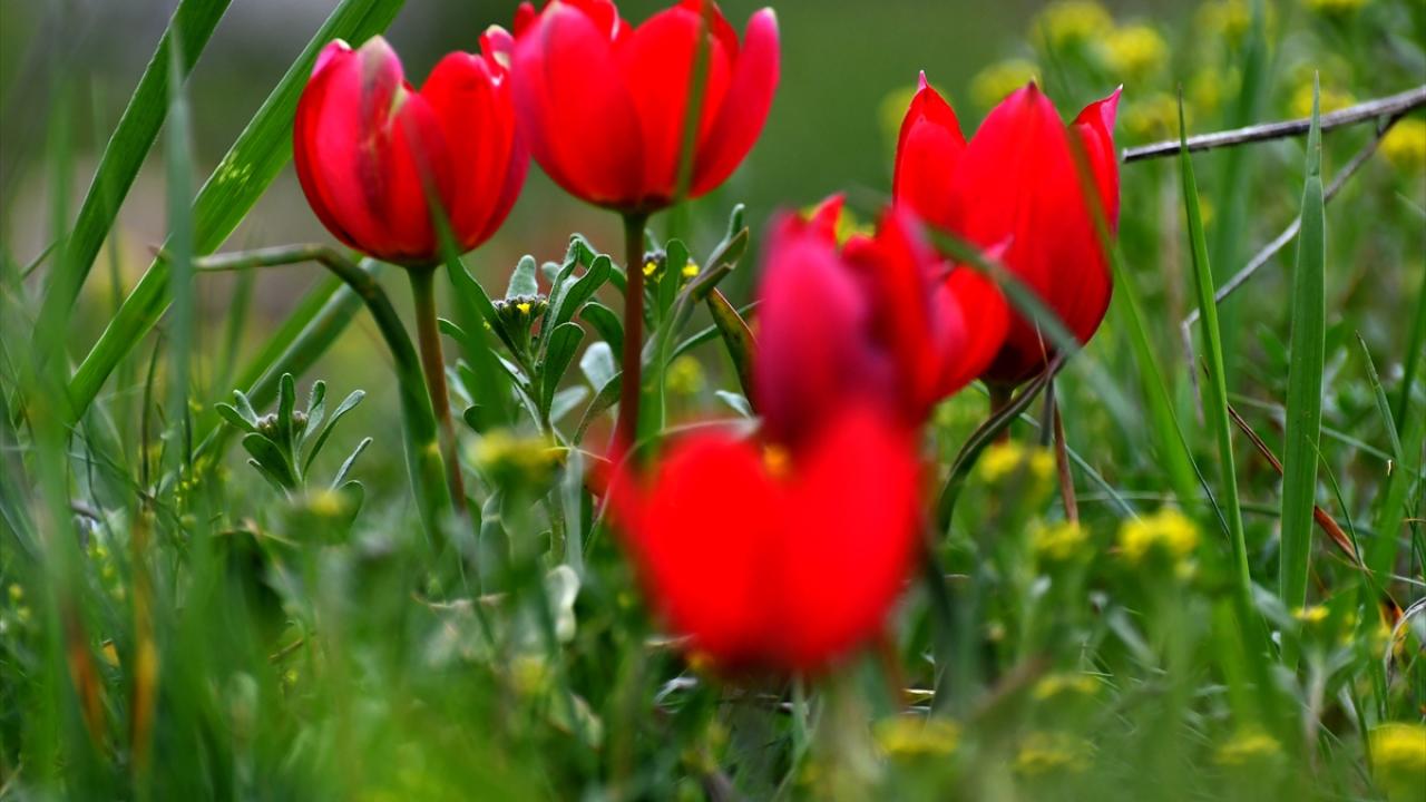 Küçük şelaleleri ve ekolojik zenginliğiyle yaban hayvanlarına barınma imkanı sunan Keklik Vadisi`nde açan kırmızı renkteki yaban laleleri de doğaya ayrı bir güzellik katıyor.