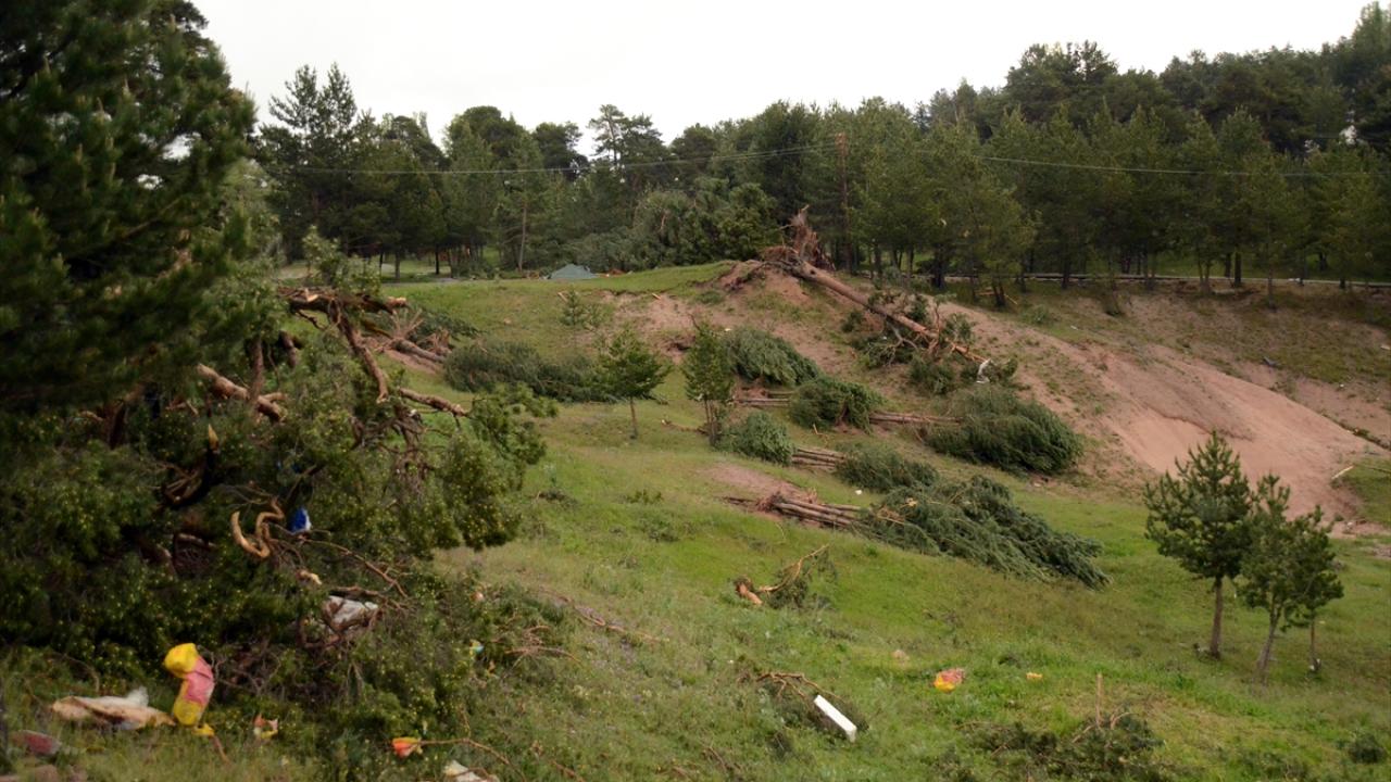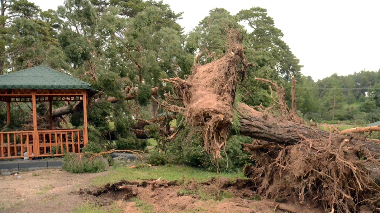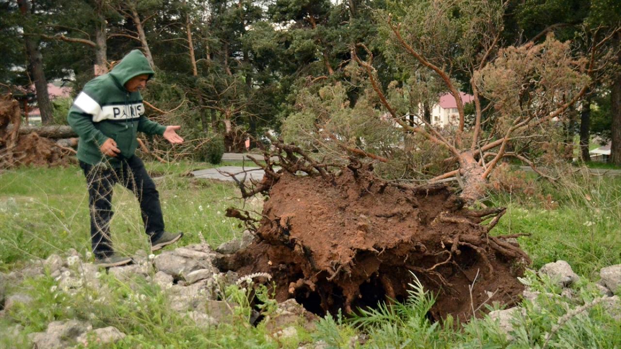 Mahalle sakinlerinden Nurettin Kaya, "Kameriyede otururken karşıda bir eski binanın sacları üzerimize geldi. Sonra bizi döndürerek havaya kaldırdı gördüğünüz gibi ağaçları yıktı. Dereye doğru koştuk, çamlar üzerimize düşseydi ölmüştük." dedi.