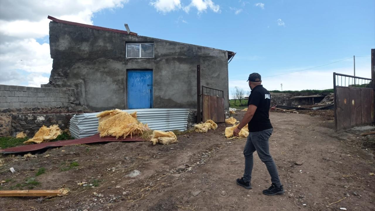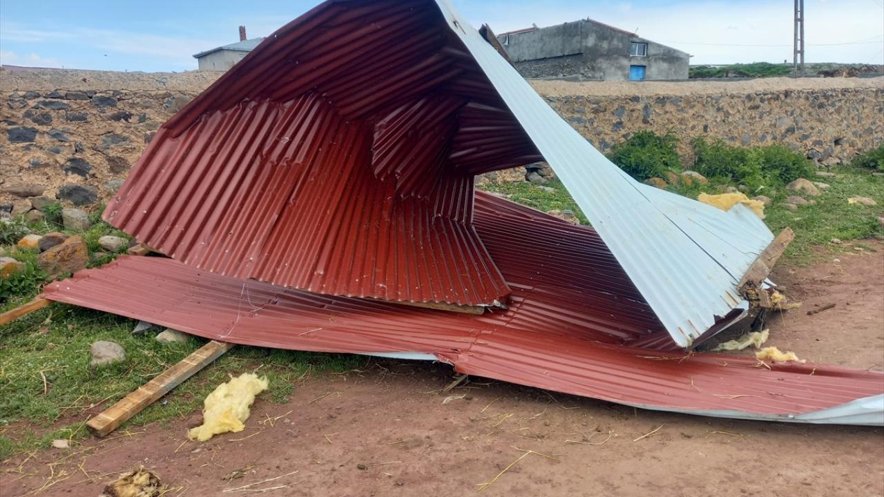 Kars'ta meydana gelen hortum bazı ev, ahır ve samanlıkların duvar ile çatılarına zarar verdi.